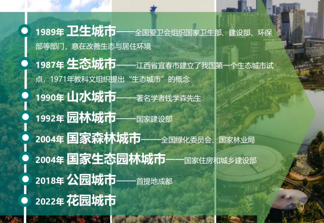 另一方面,全国也在不断提出新的城市理念,从“卫生城市”到“生态城市”“园林城市”,再到“森林城市”“公园城市”,最终发展到“花园城市”。