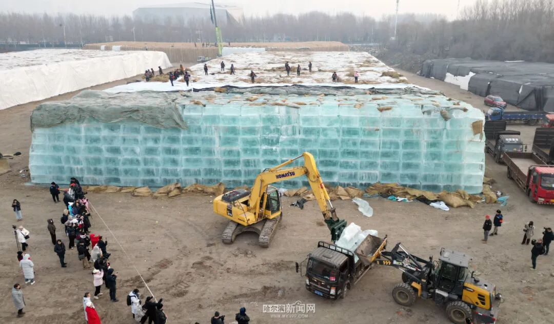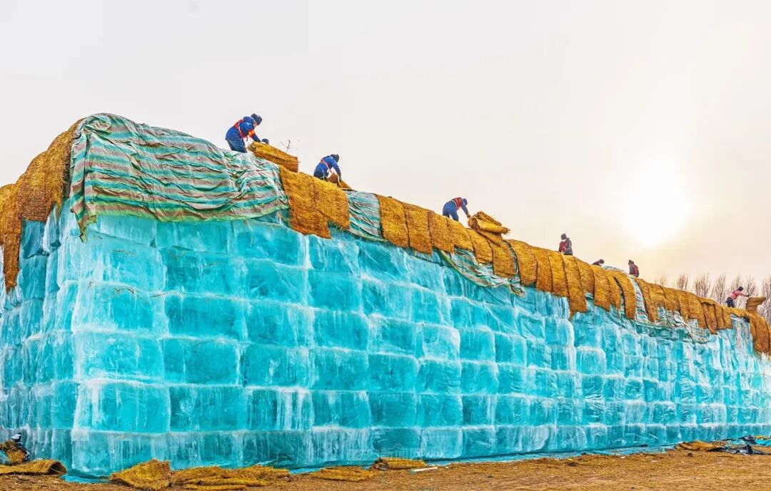 11月24日,备受瞩目的第二十七届哈尔滨冰雪大世界存冰正式投入使用。历经十个月严密保温的冰体,在工人们的巧手下一层层揭去覆盖的“厚棉被”,一座座晶莹剔透的冰山逐渐展露出来。据悉,哈尔滨冰雪大世界将于25日正式启动冰建工程。