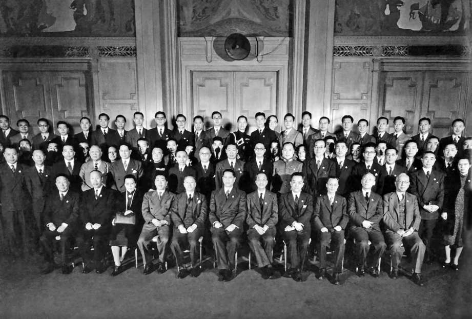 中国代表团成员,左起董必武、吴贻芳、魏道明。