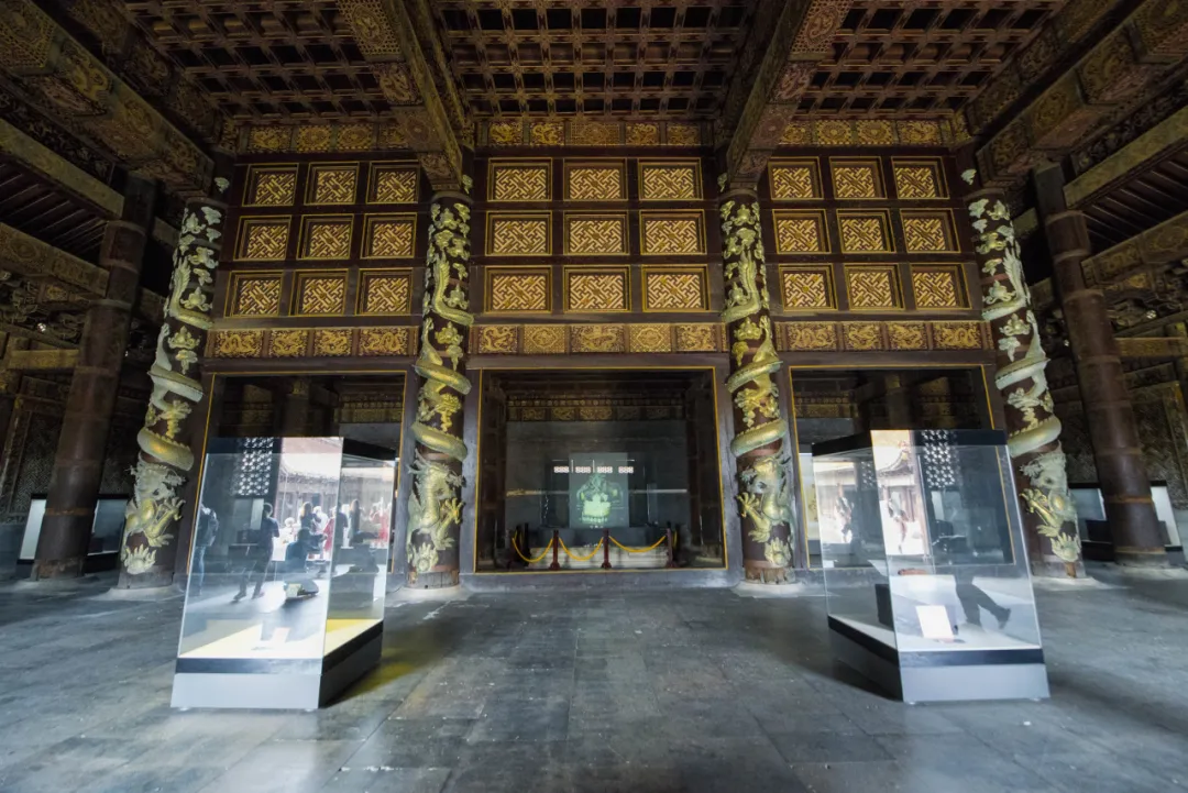 再看定东陵,这里的一切都在打破常规。黄花梨木的梁柱散发着淡淡幽香,凤引龙的雕刻张扬着女性的力量,金龙和玺彩画在阳光下熠熠生辉。