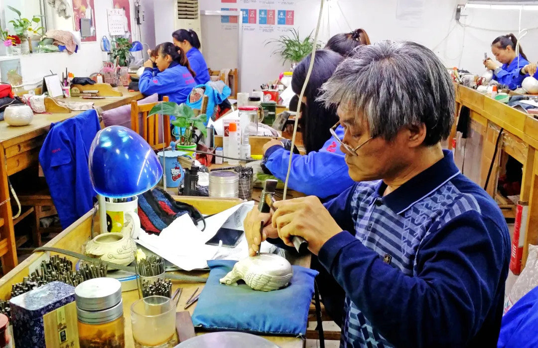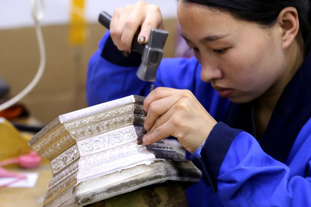 在工作间里,匠人们锤打、錾刻、点蓝,每一道工序都延续着昔日皇家金银细作工艺的精益求精。也正是这份对完美的执着,让传统技艺在当代焕发出新的生命力。