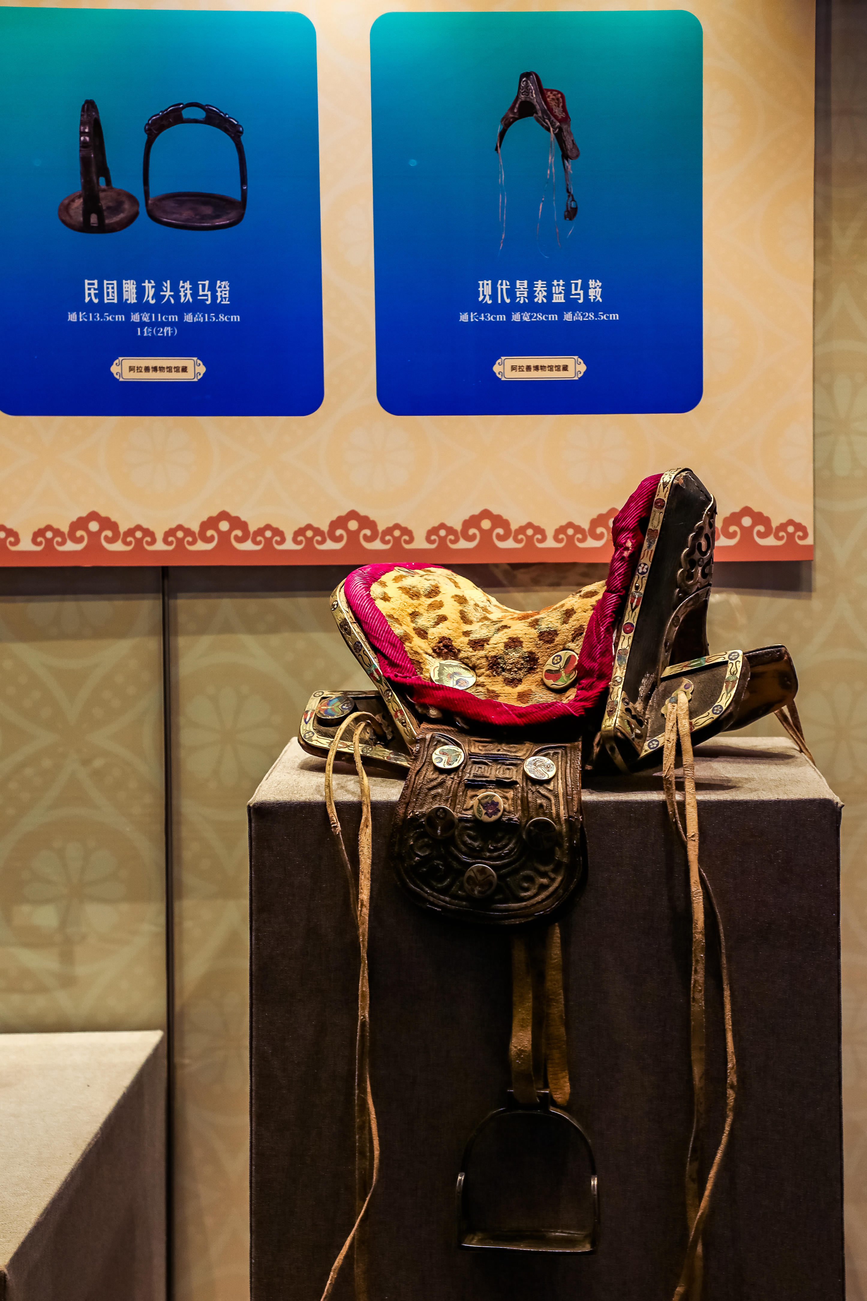 本次展览以 “多彩阿拉善·融情共生” 为主题,分为历史篇与民俗篇两大展区,精选129件(套)珍贵文物与非遗作品,用场景复原的方式,全景呈现阿拉善的多元文化与浓郁民族风情。