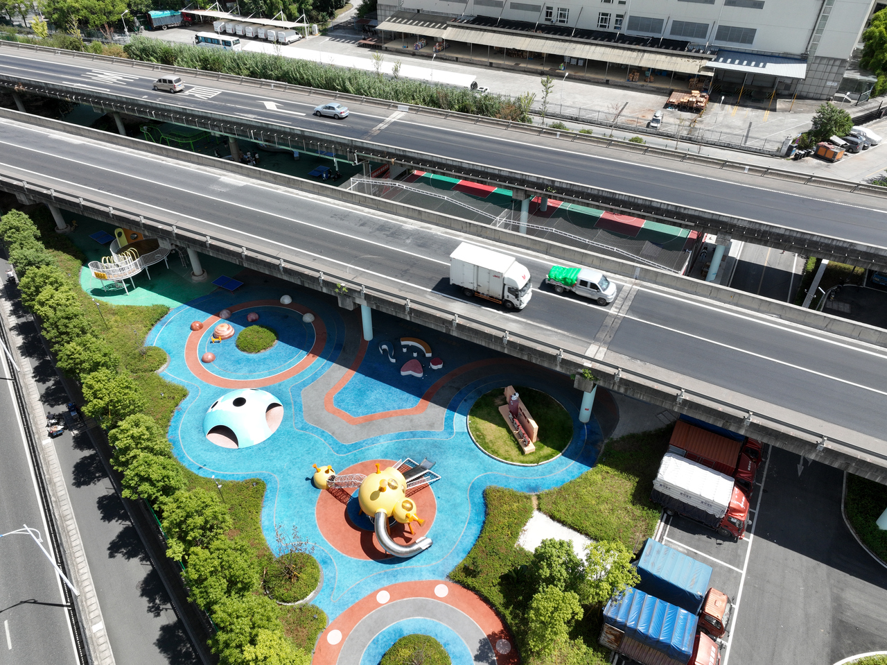 在金丽温高速温州娄桥高架下方,鸿博瓯海体育公园近日落成。依托8万平方米桥下空间,温州实施“清拆腾用”整治,清运1200余吨工业垃圾、修复相当于11个标准足球场的生态面积,将闲置荒地转化为省级全民健身中心。