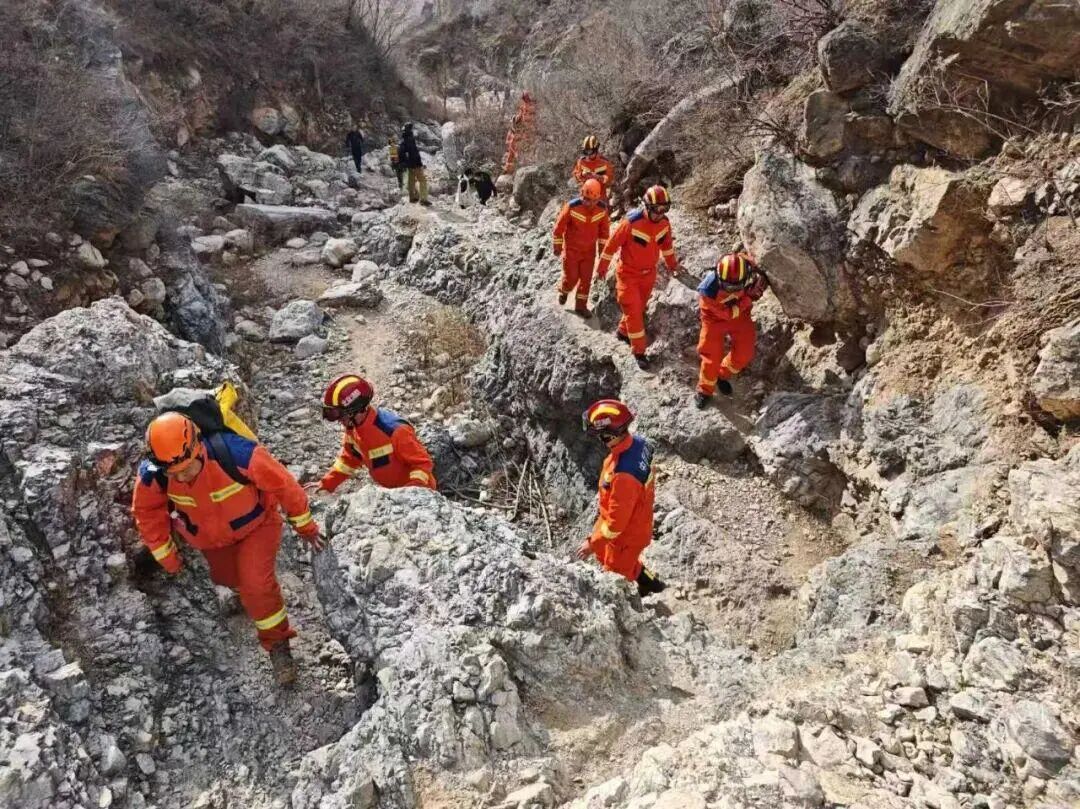 11时44分,斋堂消防救援站与雁翅小型消防站相继抵达山下。根据报警人提供的信息,救援人员迅速研判地形,制定了首条救援路线。12时02分,救援队伍携带担架、绳索等装备进山搜救。途中因游客众多、山路崎岖,行进颇为艰难。
