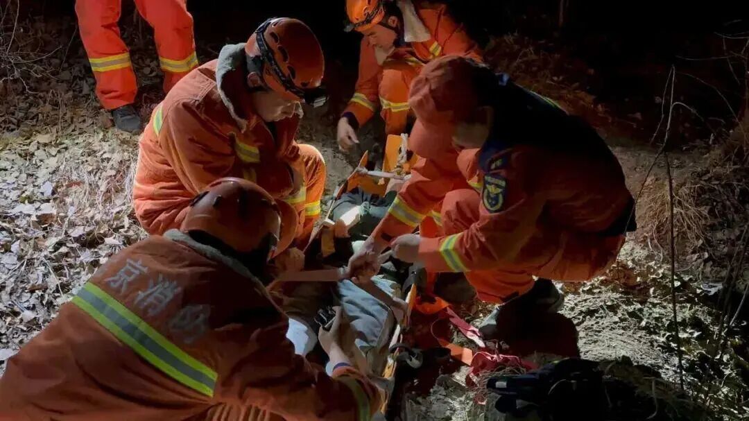 据了解,被困游客当天与家人朋友从顺义区自驾至江水河村游玩,原计划在山顶观景后返回。不料下山时天色已暗,又未携带照明设备,该游客在抱着孩子行走时不慎踩空,导致脚踝受伤,随即报警求助。