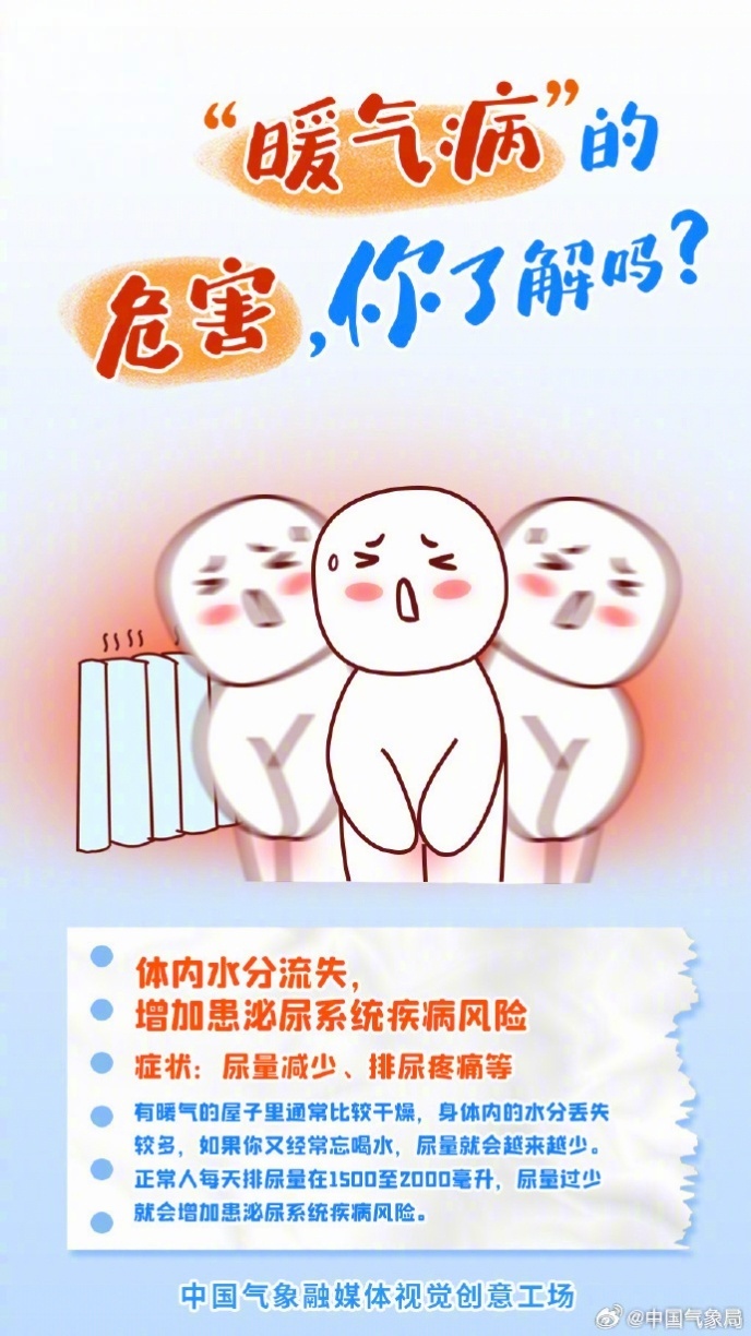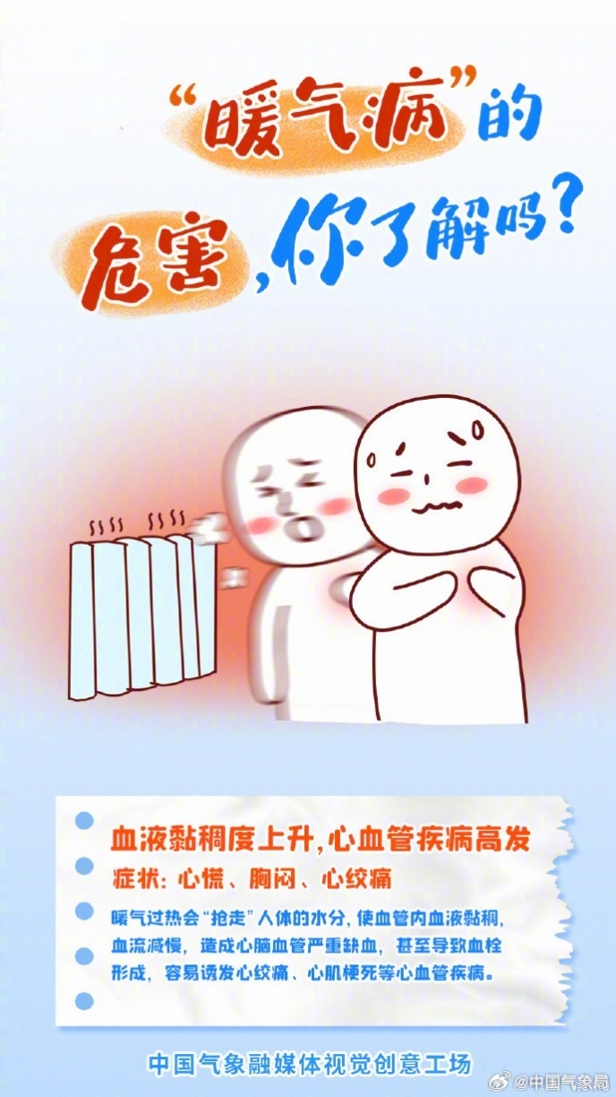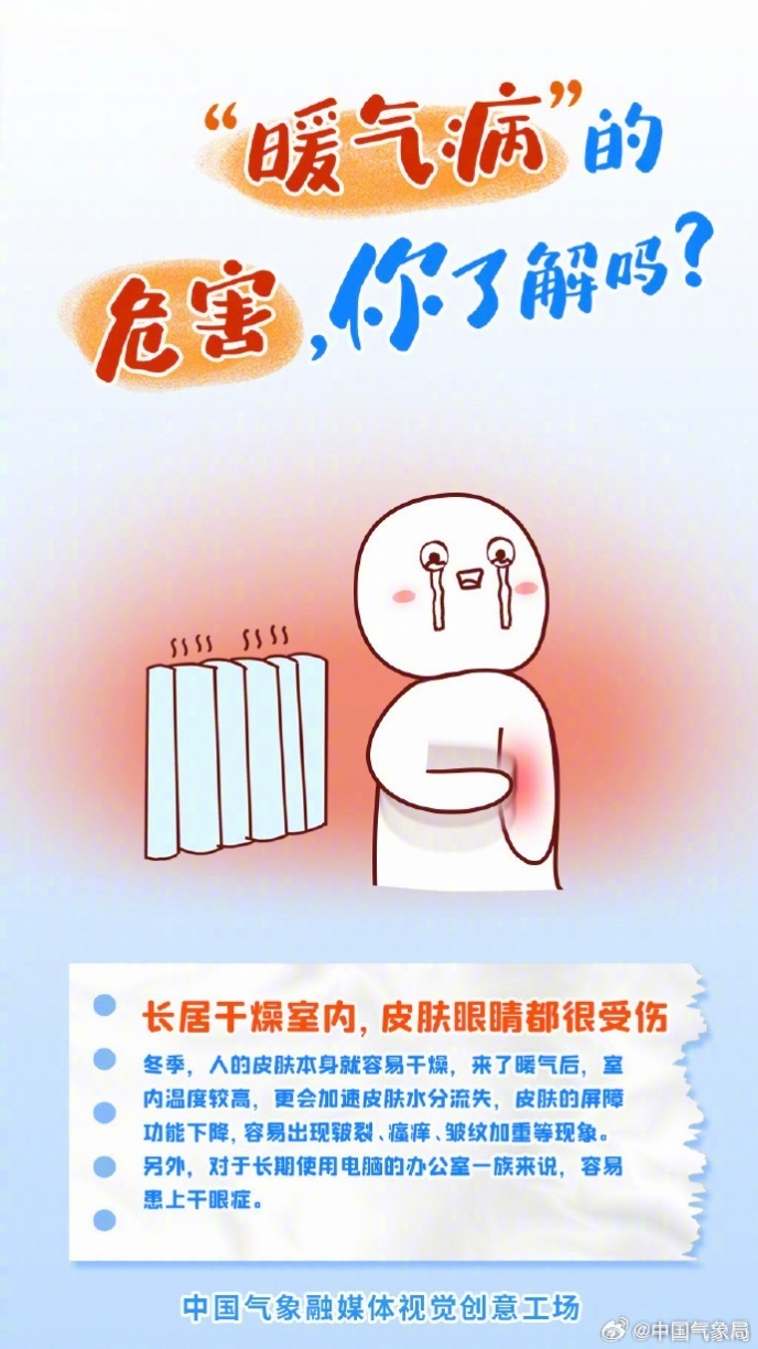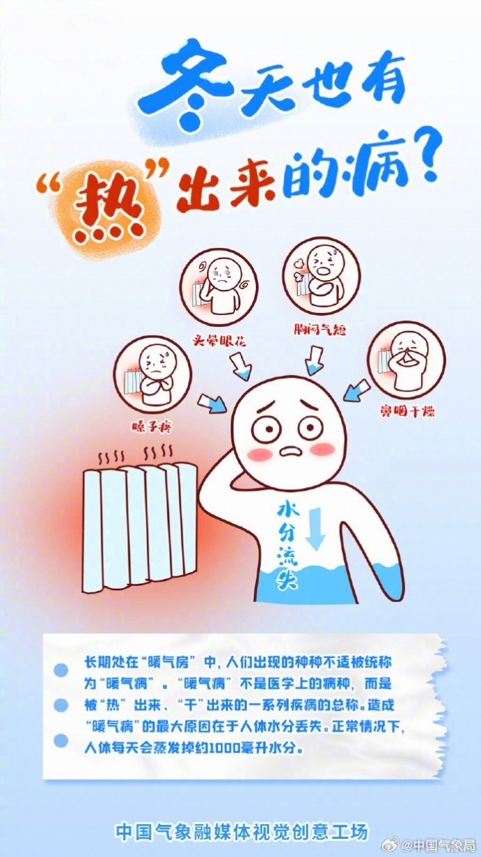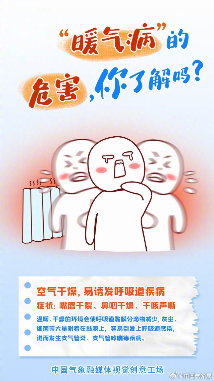 预计11月下旬,我国总体降水稀少。嗓子疼、头晕眼花、胸闷气短、鼻炎干燥……冬天暖气房待久了,总会出现一些不适,原来冬天也有“热”出来的病。暖气病的危害你了解吗?