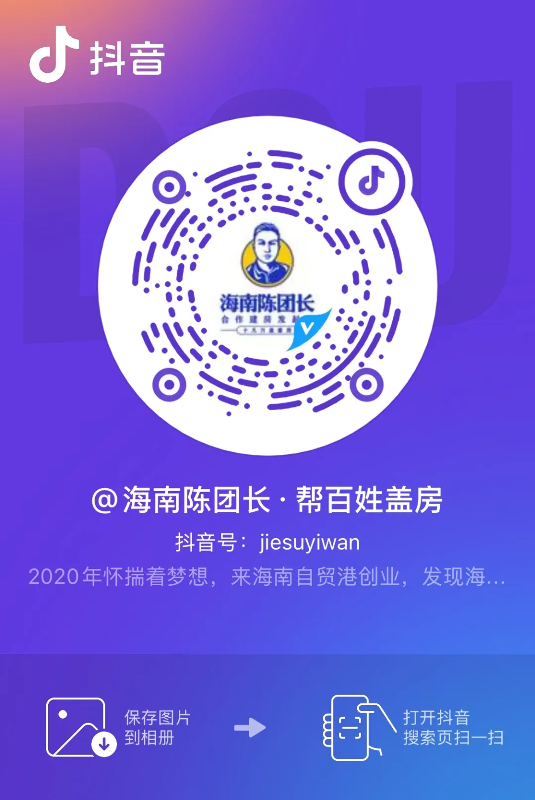 • 关注抖音账号:海南陈团长·帮百姓盖房