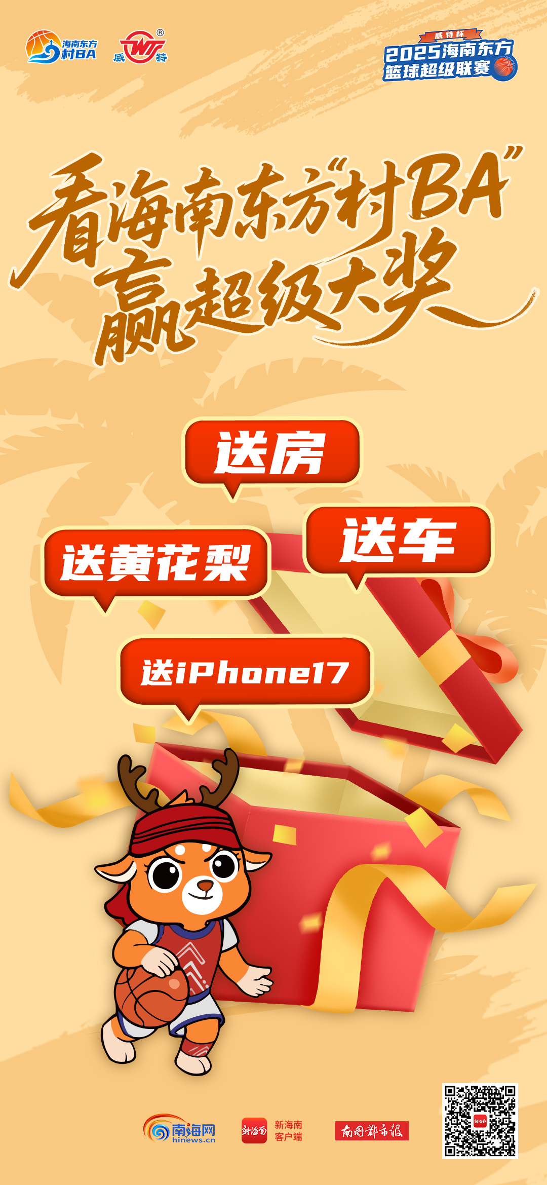 “威特杯”2025海南东方篮球超级联赛(简称海南东方“村BA”)火热进行中,观赛的同时,锦鲤大奖也在等着你。
