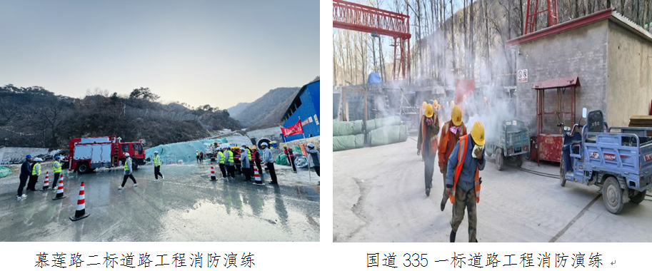 结合怀柔生态涵养区防火压力大的实际,开展22次消防演练,553人参与,涵盖灭火器操作、生活区及施工现场火情处置、隧道燃油泄漏火灾等多场景。参演人员熟练掌握灭火器“提、拔、握、压”操作规范及消防水带使用方法,多数演练实现3分钟内应急小组响应、2分钟内人员疏散,有效检验了应急预案可行性,提升了初期火情处置效率。