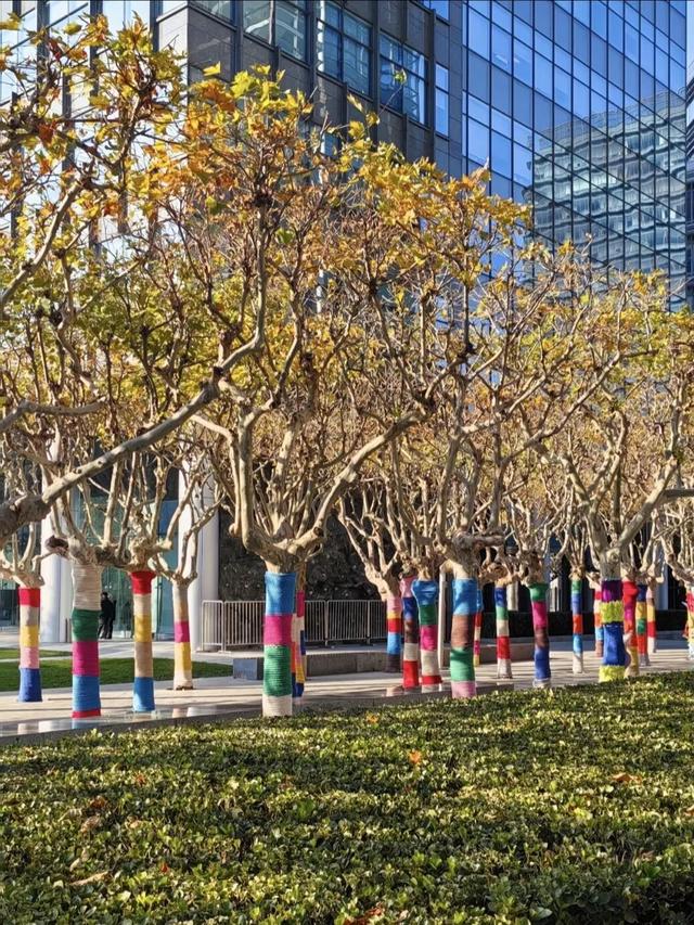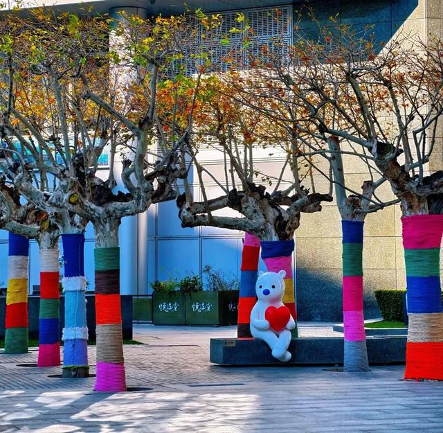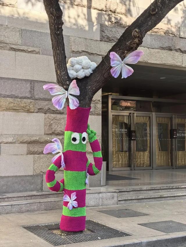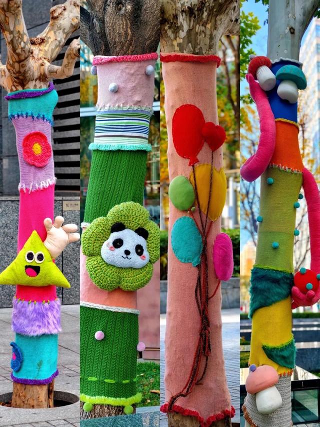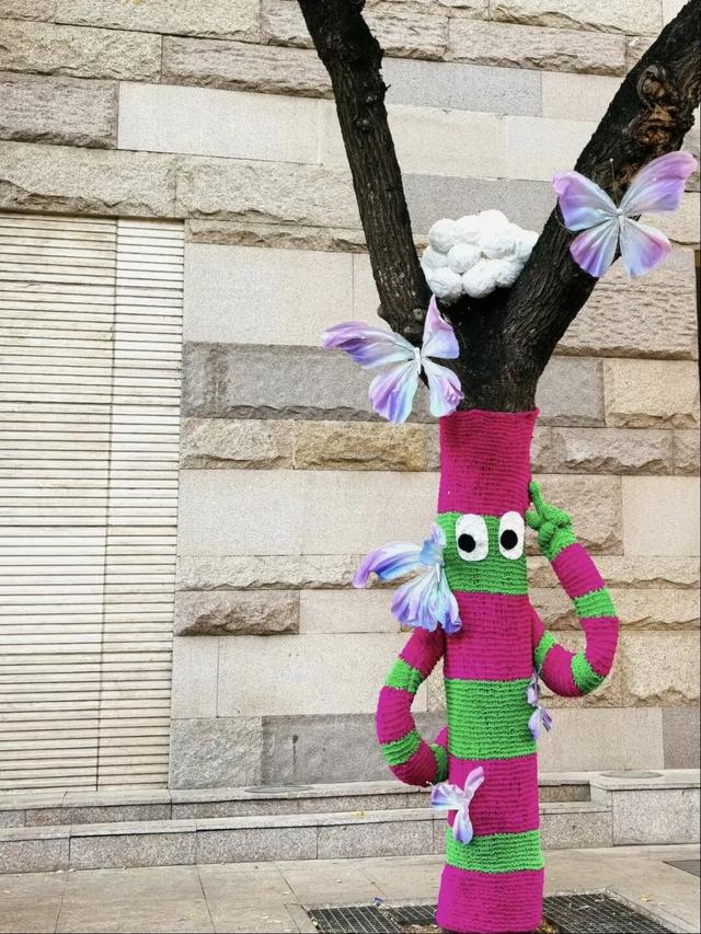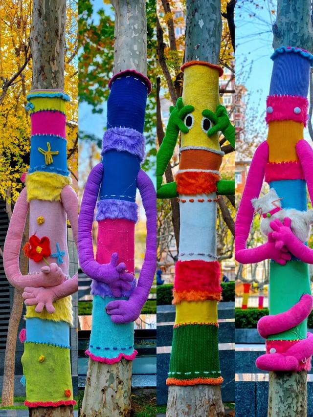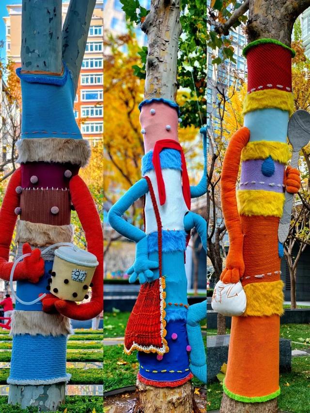 树干穿上彩衣,街角增添色彩
