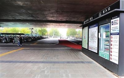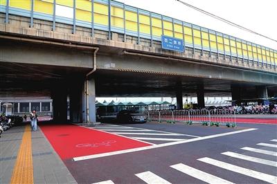 拓宽慢行通行空间是此次改造另一个核心目标,举措是对桥下空间的再造。其中,在A口北侧利用空地硬化铺设植草砖,新增近1990个非机动车位;同时,针对乱停放的自行车,充分利用桥下空间和腾退的旧车道,在机动车停车场西侧拓展非机动车停放区3000余平方米,增加1590个车位。这些曾被遗落的角落,经过精雕细琢,焕发新生。