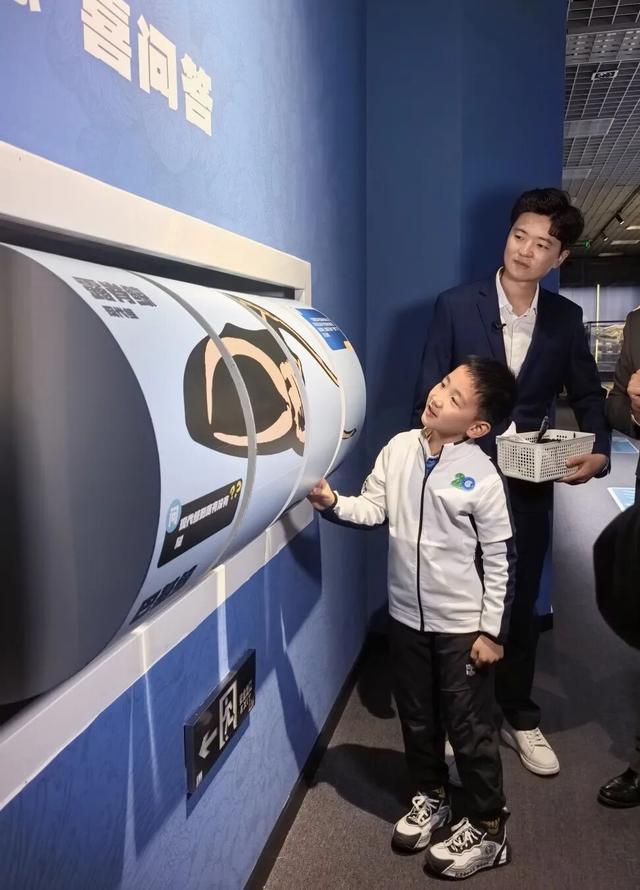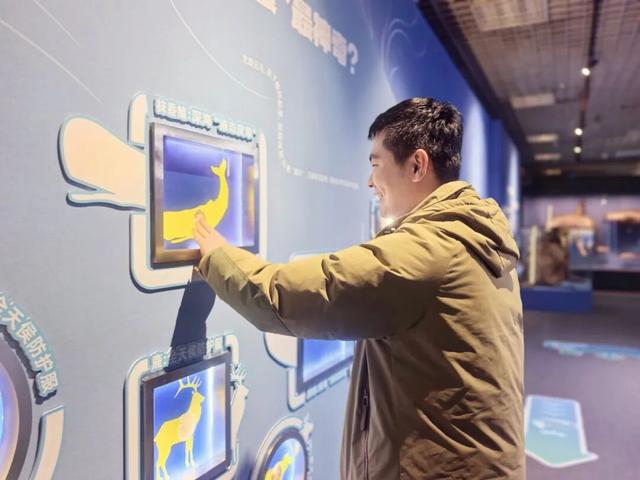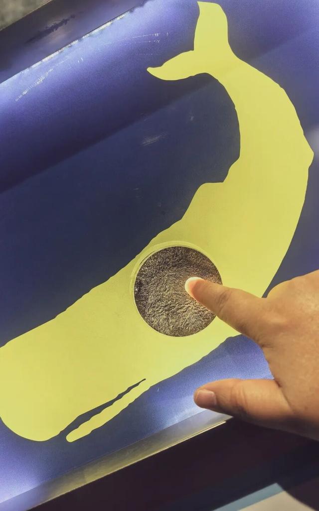 特别设计的“鲸”喜问答等互动装置,邀请观众感受鲸鱼的皮肤质感、鲸鱼的声音、鲸鱼的手骨,让孩子们在互动游戏中轻松涨知识。