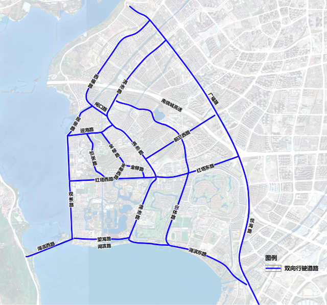 观景路(迎海路至闸口路段)南向北单行。