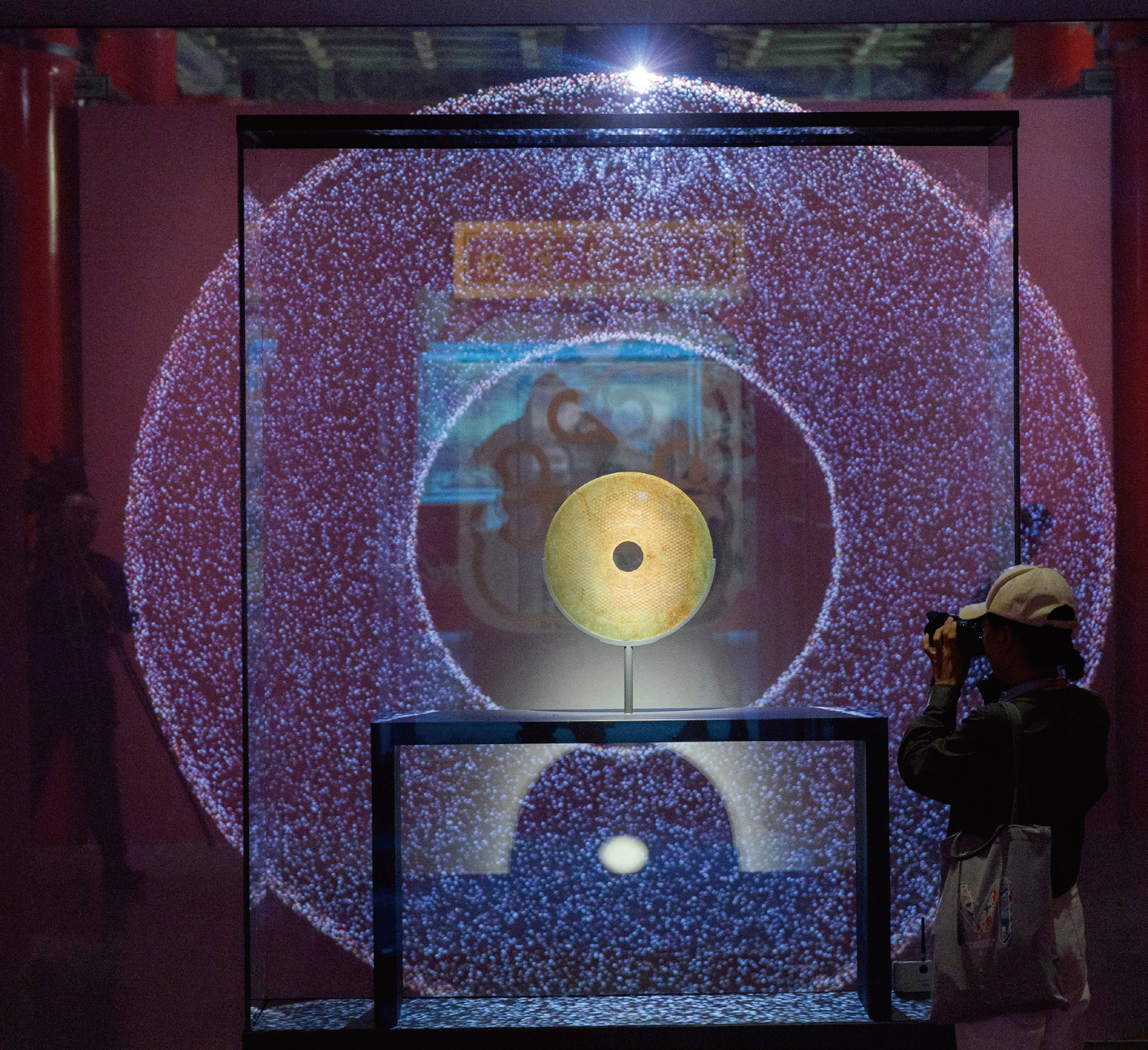 2025年9月29日,“百年守护——从紫禁城到故宫博物院”展览开幕式在北京故宫博物院举行。图为观众参观青玉兽面纹璧(金良快/摄)