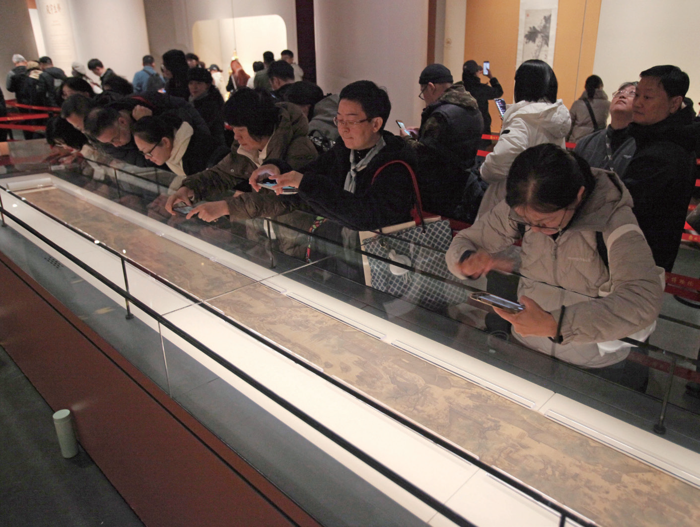 2025年10月22日,观众在故宫“百年守护——从紫禁城到故宫博物院”展上观看《张择端清明上河图卷》