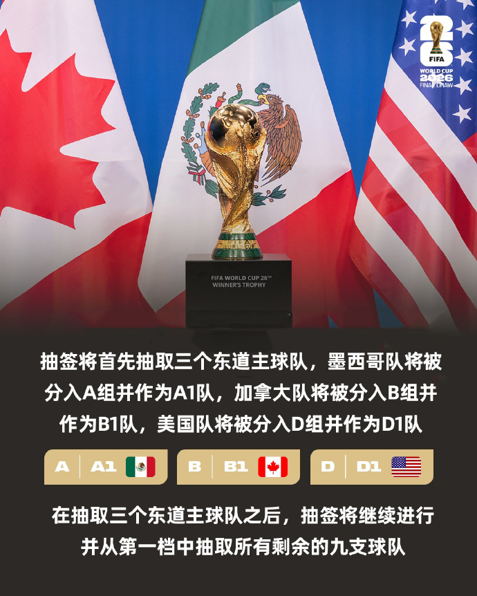 2026美加墨世界杯抽签流程公布,分组抽签仪式将于12月5日在美国华盛顿特区肯尼迪演艺中心举行。