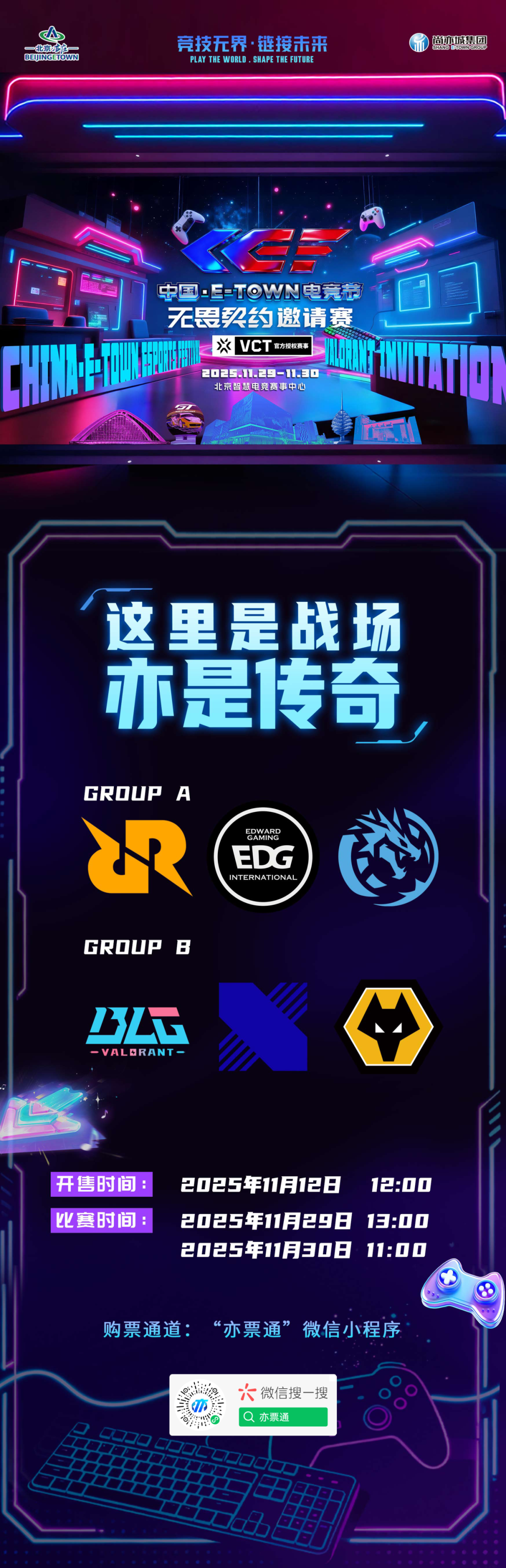 第二届中国・E-TOWN电竞节王者荣耀邀请赛落下帷幕,但精彩还在继续。11月29日-30日,《无畏契约》国际邀请赛接力开燃,分组对战阵容正式揭晓!