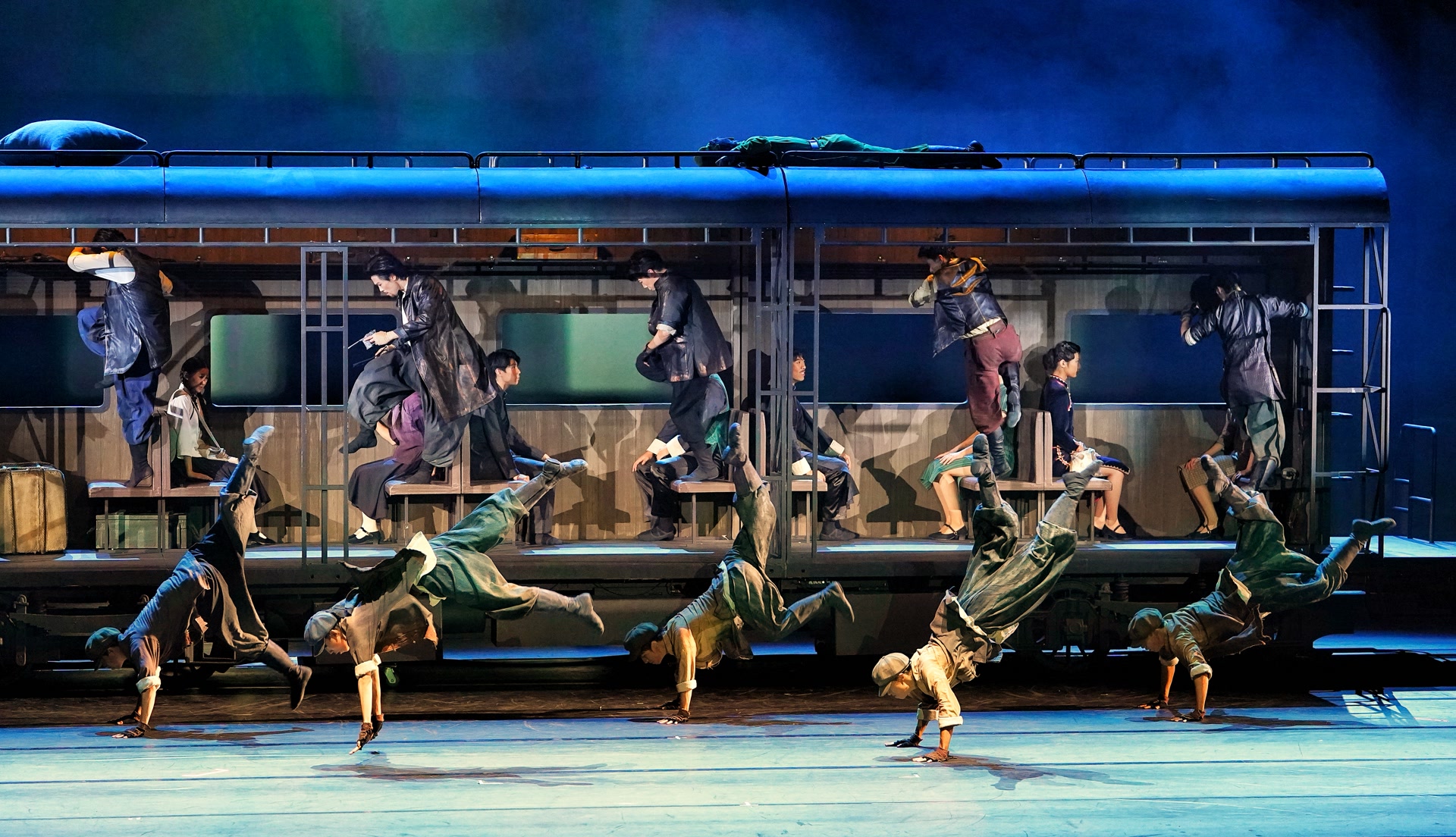 钢轨蜿蜒,硝烟弥漫,火车隆隆向前,随之浮现的“铁道游击队”的醒目字样唤醒了鲁南铁道上那段热血沸腾的抗战传奇。今年是中国人民抗日战争暨世界反法西斯战争胜利80周年,11月26日晚,国家大剧院与北京舞蹈学院联合制作的新版经典民族舞剧《铁道游击队》在国家大剧院迎来首演。