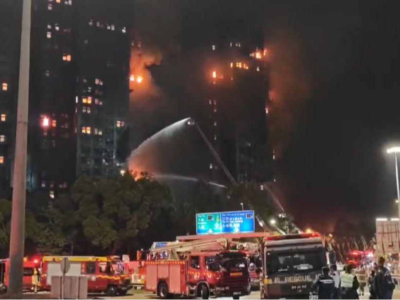 11月26日下午,香港新界大埔屋邨宏福苑多栋住宅楼发生火灾,造成重大人员伤亡。