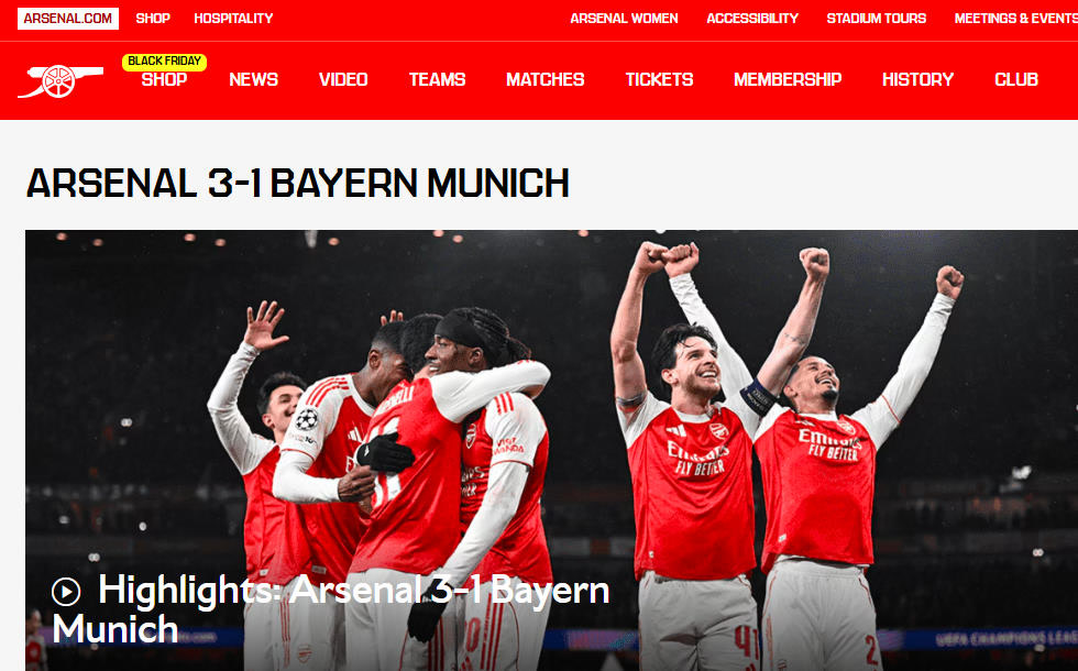 北京时间11月27日凌晨,本赛季欧冠联赛第一阶段(联赛阶段)第5轮第二比赛日展开较量。在伦敦酋长球场,英超阿森纳队3比1击败德甲“巨人”拜仁慕尼黑队,豪取五连胜,独占积分榜首。