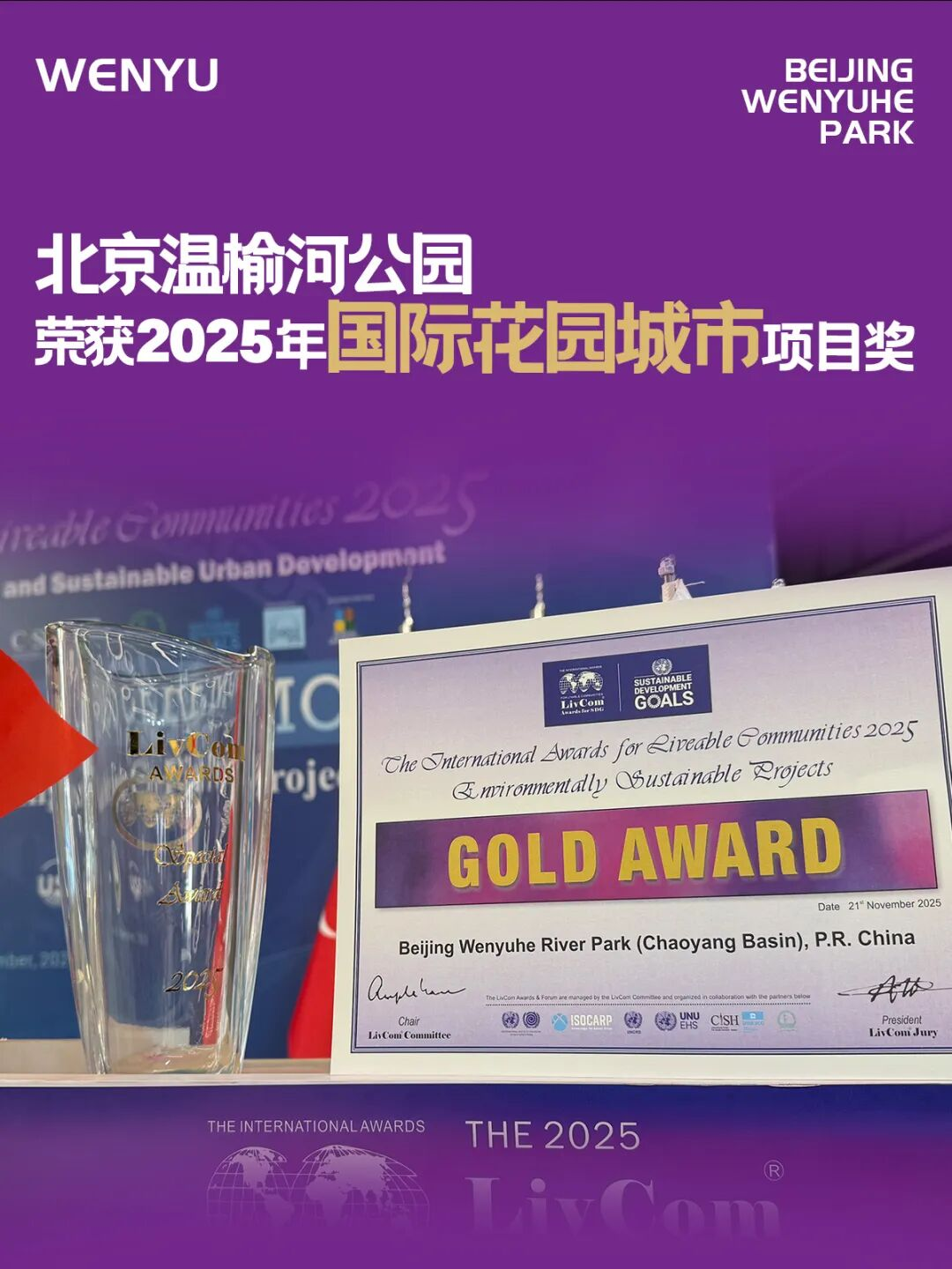 2025年11月21日,被誉为“绿色奥斯卡”的国际花园城市竞赛全球总决赛在土耳其伊斯坦布尔落幕。北京温榆河公园(朝阳段)凭借在生态建设与可持续发展领域的卓越实践,不仅拿下“环境可持续发展项目金奖”,更在环境、气候应对、绿色经济三大维度斩获项目类全场最高分,获评项目类“唯一特别奖”,成为全球超大城市生态治理的亮眼标杆。