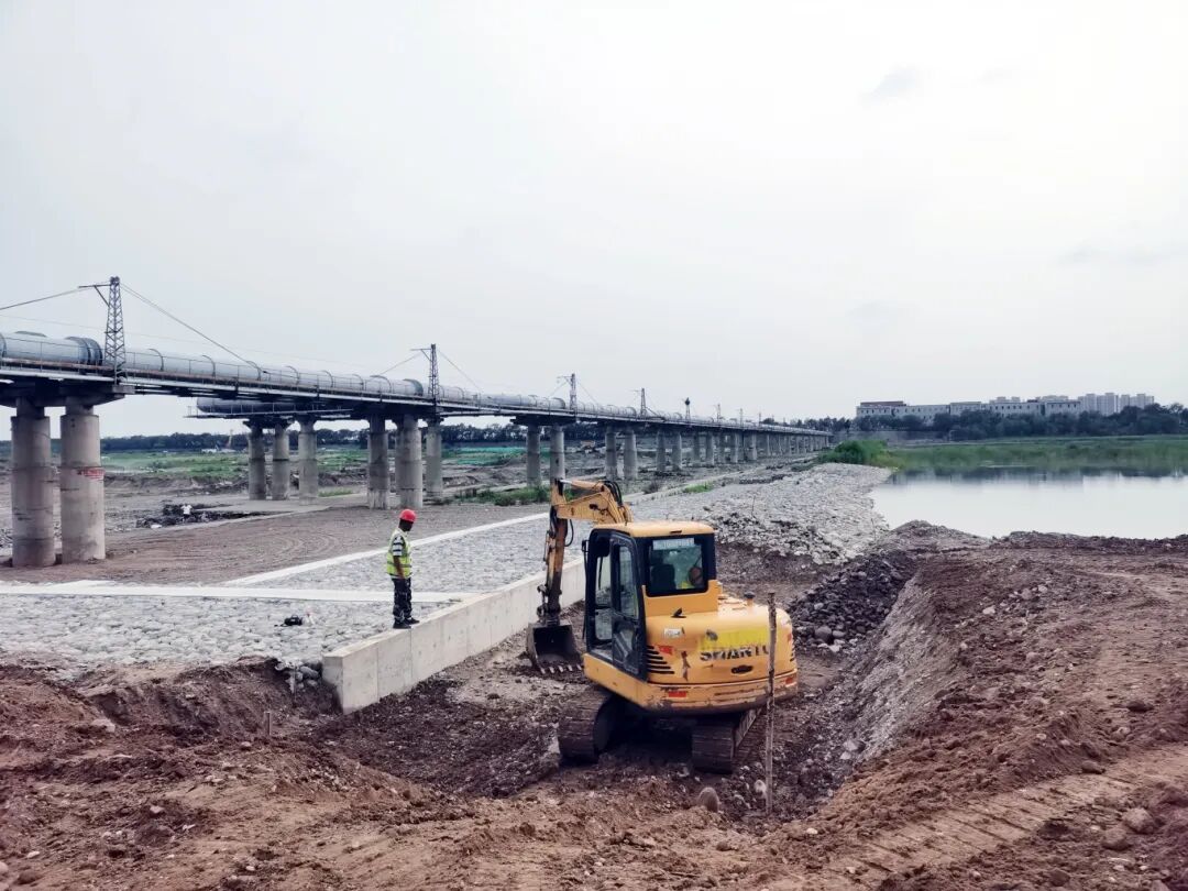 工程自2024年4月开工以来,建设团队克服汛期施工、管线迁改等挑战,累计完成土方开挖107.01万方、31.7公里沿河护岸修复、13.35万方铅丝石笼、187.42公顷滩地平整及植物防护,目前工程累计形象进度达91.7%。下一步,工程将继续完成道路修复、绿化补植和部分防护等收尾工作。