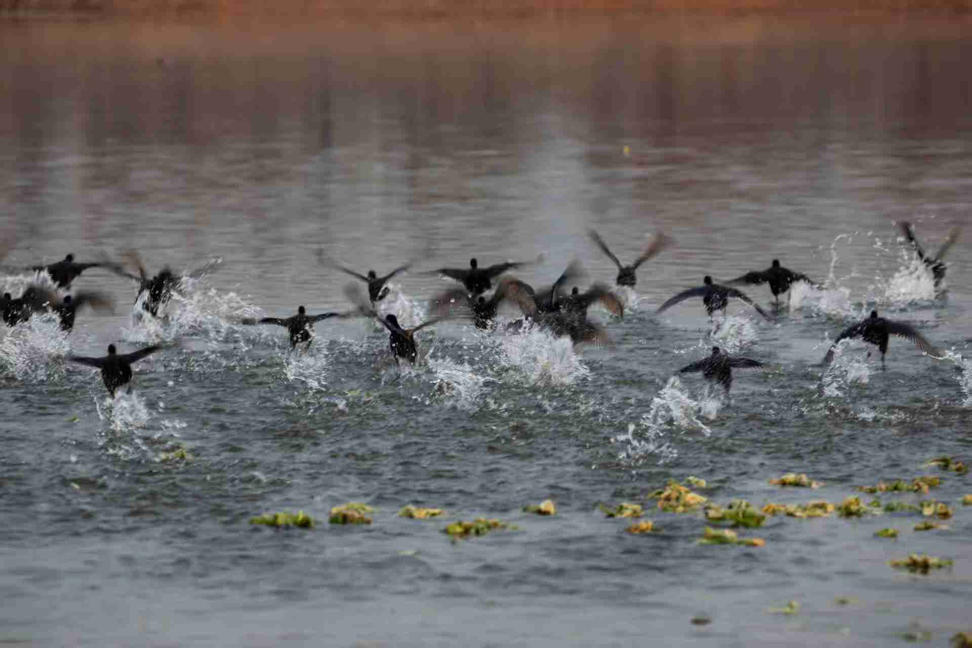 冬湖鸟影