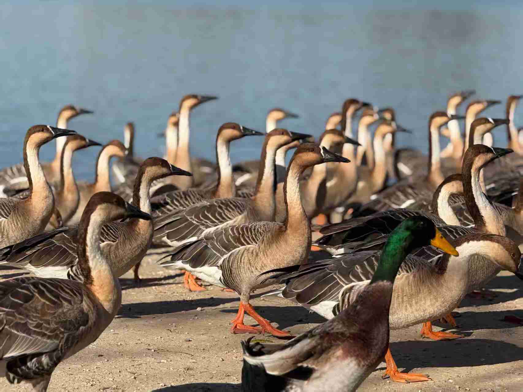 游客与水鸟共处一隅