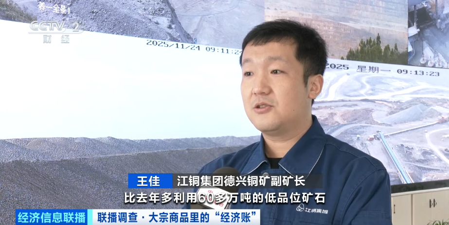 江铜集团德兴铜矿副矿长 王佳:今年我们全年计划利用低品位(铜矿石)将近1600万吨,比去年多利用60多万吨的低品位矿石,回收的铜金属比去年要多出将近1000吨。