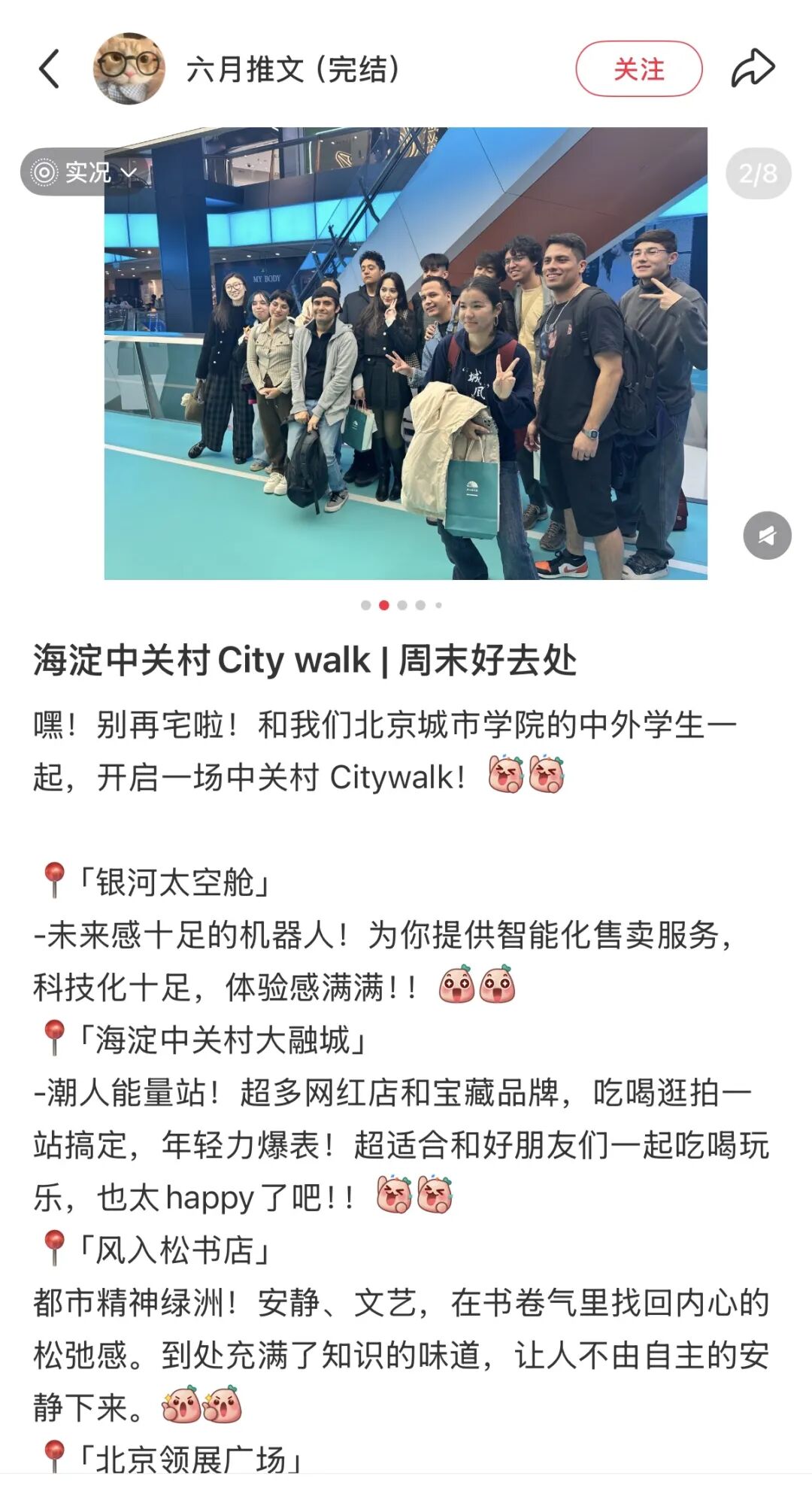 “比如博物馆承载着历史,而商圈、书店则跃动着当代城市的‘经济脉搏’和‘文化气息’。北京城市学院作为一所扎根北京、服务城市发展的应用型大学,我们希望能够让学生从厚重的历史中走出来,跳入这些鲜活的城市场景,让他们从文化的‘观察者’转变为城市发展的‘体验者’和‘参与者’。”李雪濛表示,他们看到的不是教科书里静态的案例,而是动态变化的、真实的商业实践,可以将海淀区作为理解中国现代经济的一部“立体教科书”。“我们的留学生主要来自墨西哥和乌兹别克斯坦等与中国有密切经贸合作的国家,他们未来将是中外经贸合作的桥梁。”