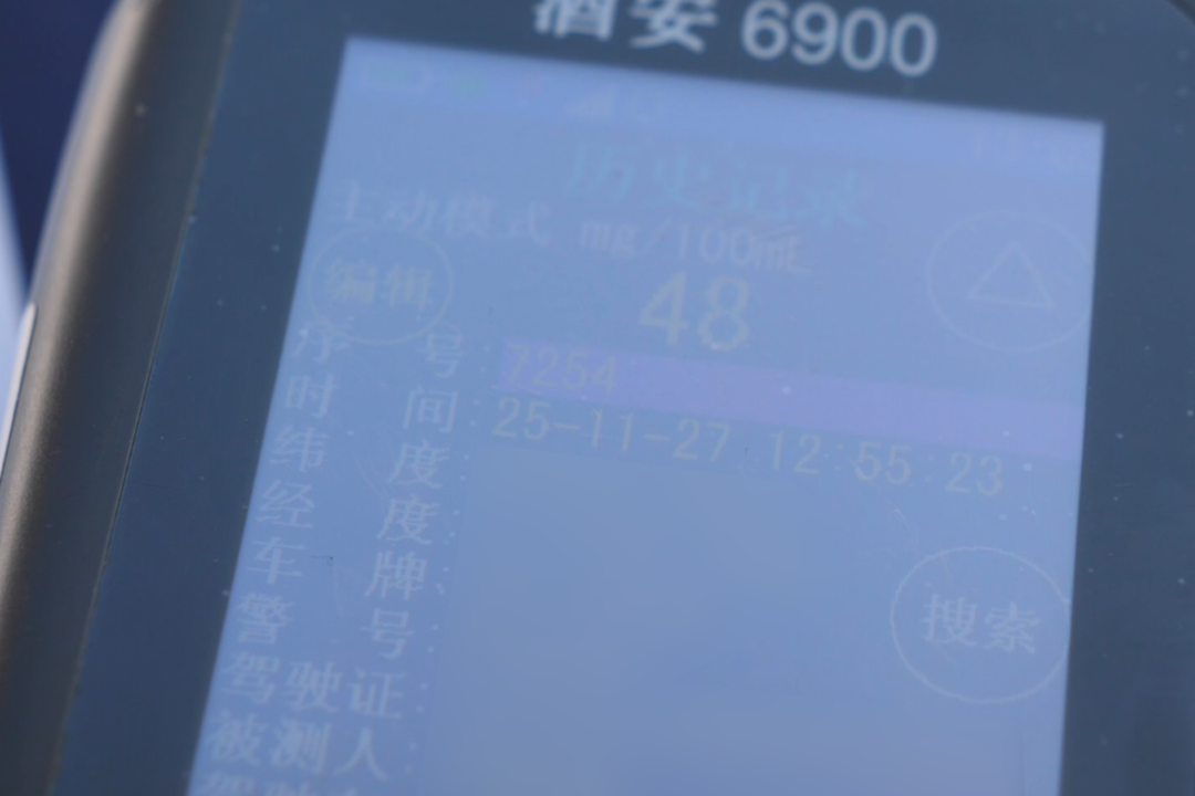 行动开始不到半小时,一辆黑色轿车被交警示意靠边停车。司机下车后神情略显紧张,交警对其进行呼气式酒精检测。仪器数据显示为48mg/100ml,已构成酒后驾驶。经进一步核查后,交警依法对该驾驶人作出处罚。