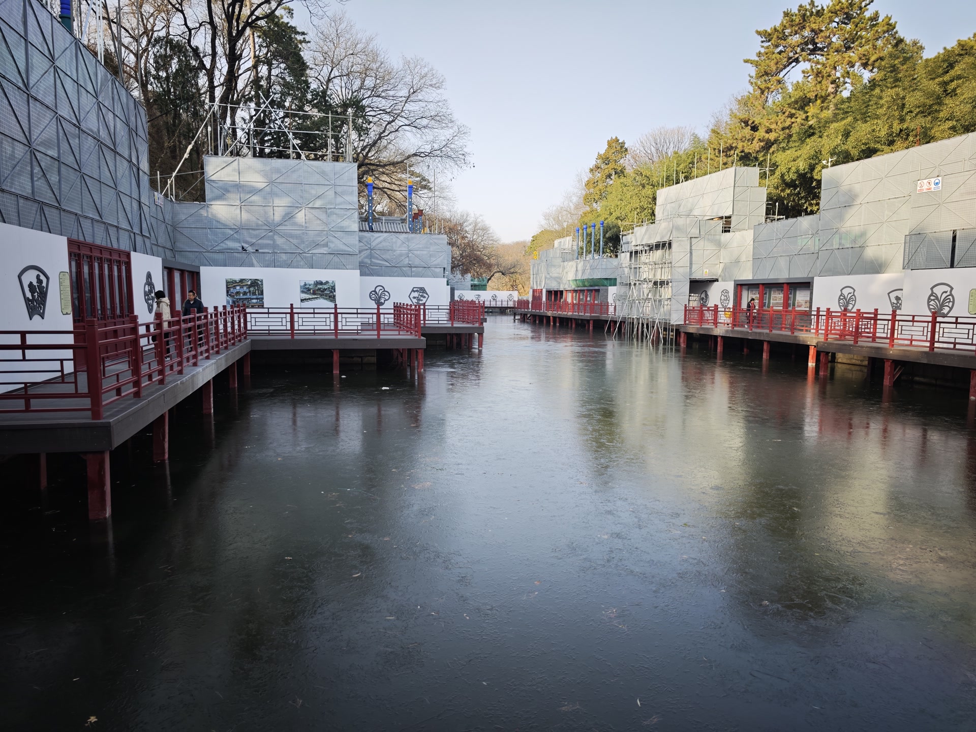 颐和园北宫门内,万寿山后山中轴线三孔桥下、后溪河的两岸是正在开展保护性修缮的苏州街,也是“文化焕新”之旅的首站。“这里曾是以姑苏胜景山塘街为蓝本,专供皇室节庆游赏的宫市买卖街。和以往的古建修复不同,苏州街是边修缮、边开放,玻璃窗里是正在修缮的工地,外面11组橱窗和17处隔扇门将古建修复工作展示给游客,帮助大家领略苏州街的历史文化,沉浸式体验古建修缮过程。”站在水面上的栏杆旁,颐和园古建工程科工程师常耘硕带大家逐一详解修复点位,揭秘清代建筑营造的“八大作”技艺,“按计划,苏州街修缮工程工期为3年,再有约1年时间,大家就可以看到苏州街的繁华街景了。”