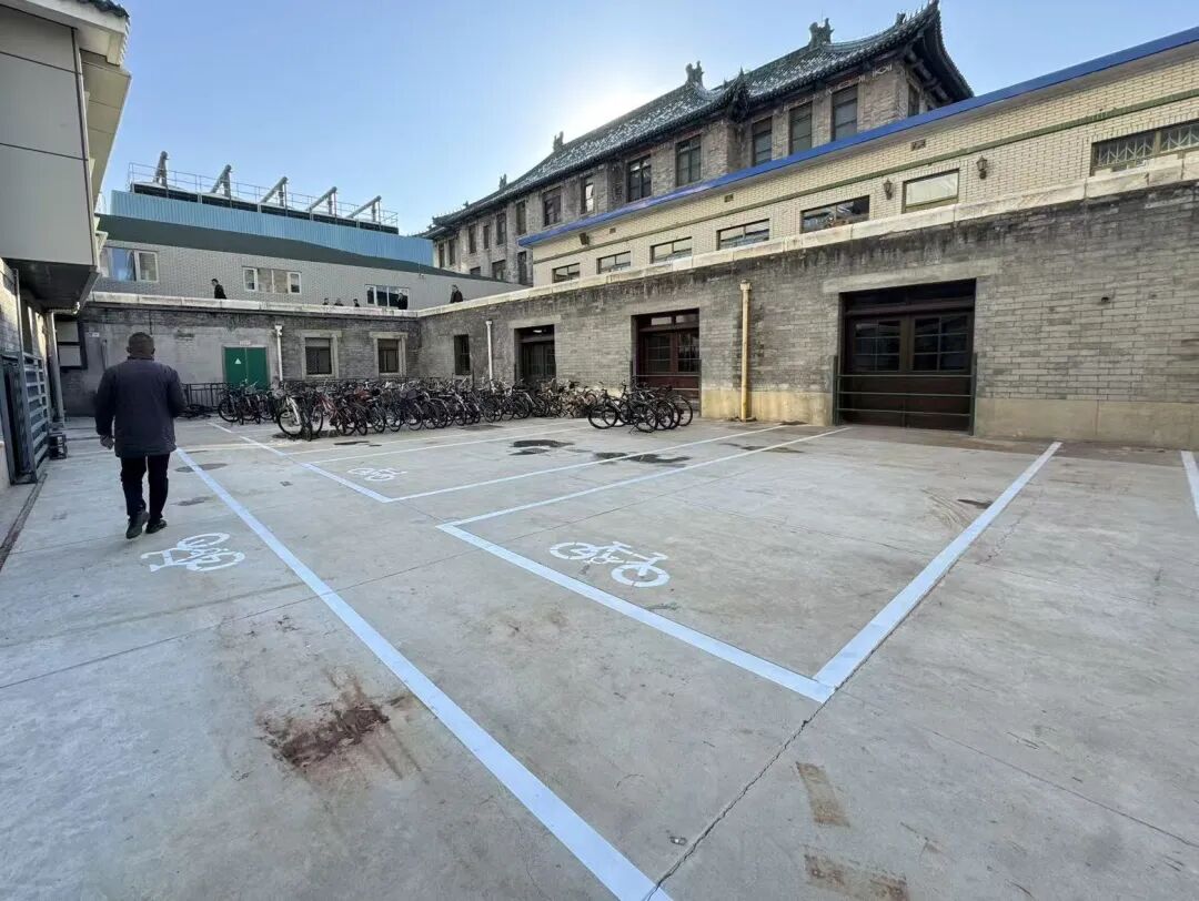 医院内部新施划的自行车专属停放区。