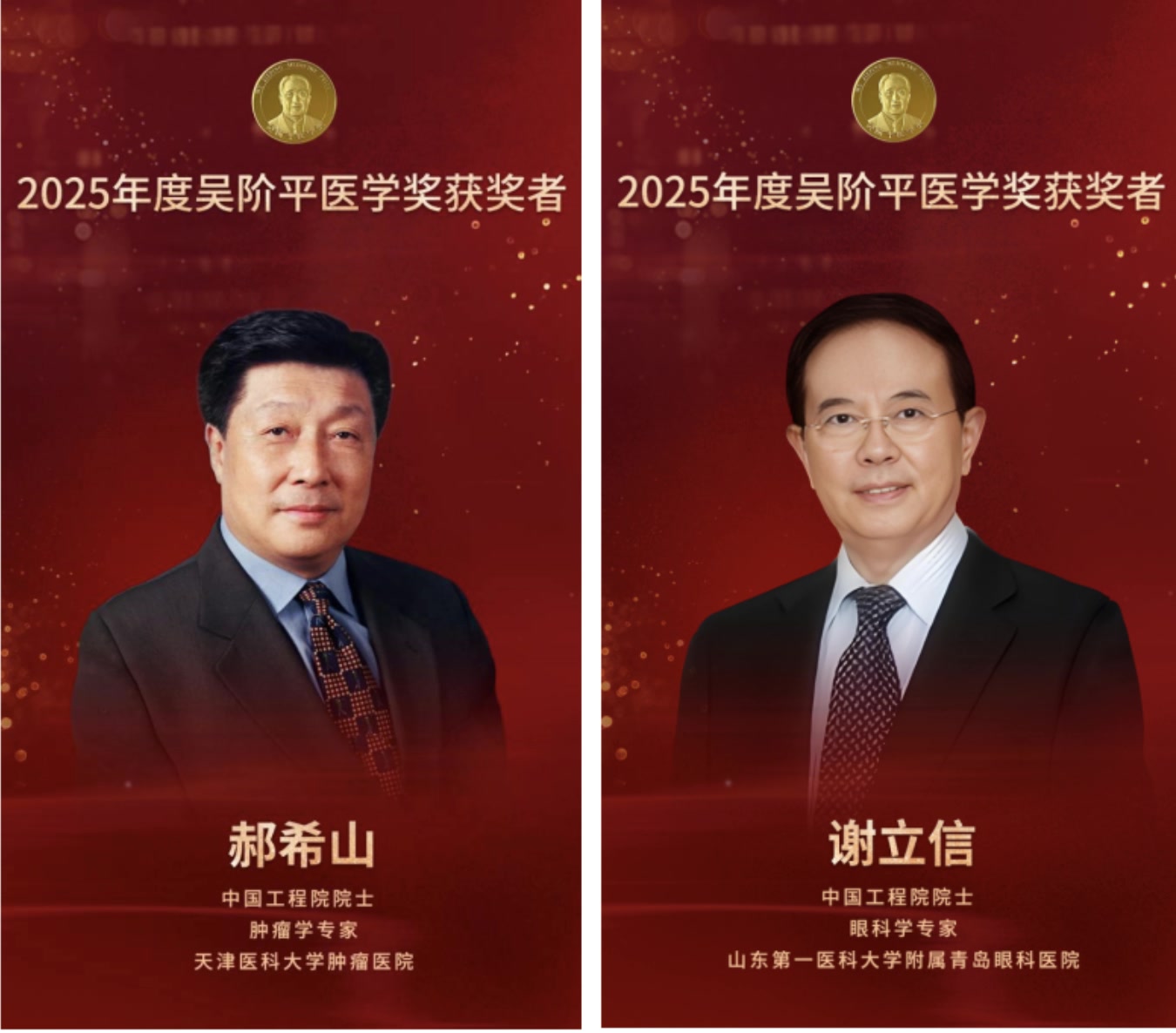 2025年度吴阶平医学奖授予中国工程院院士、肿瘤学专家郝希山教授,中国工程院院士、眼科学专家谢立信教授,以表彰他们在医学临床与科研工作中所取得的杰出成就。