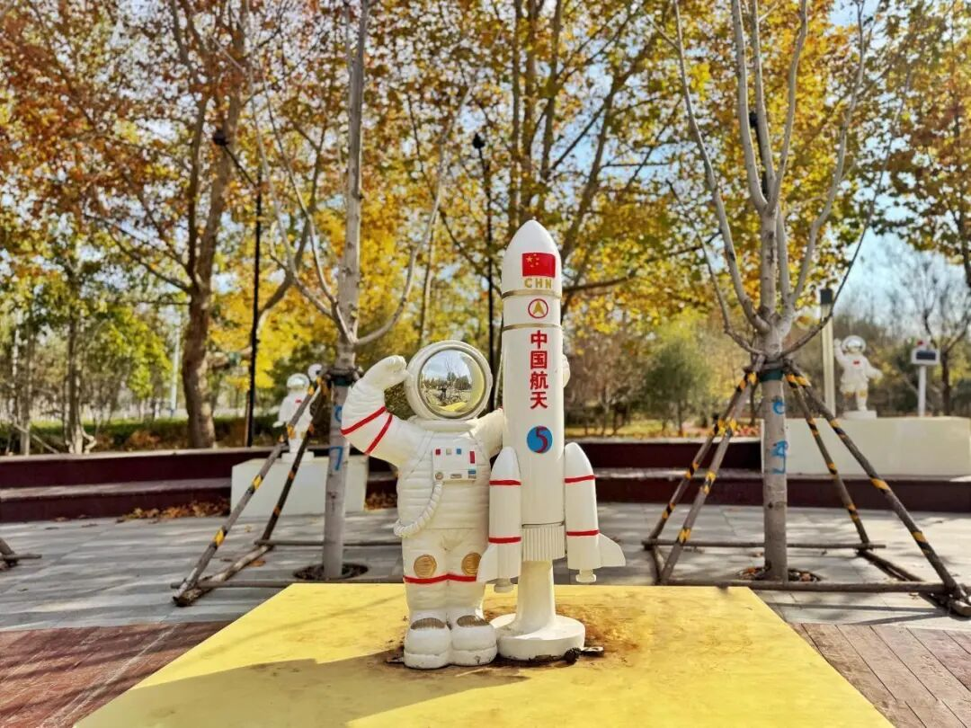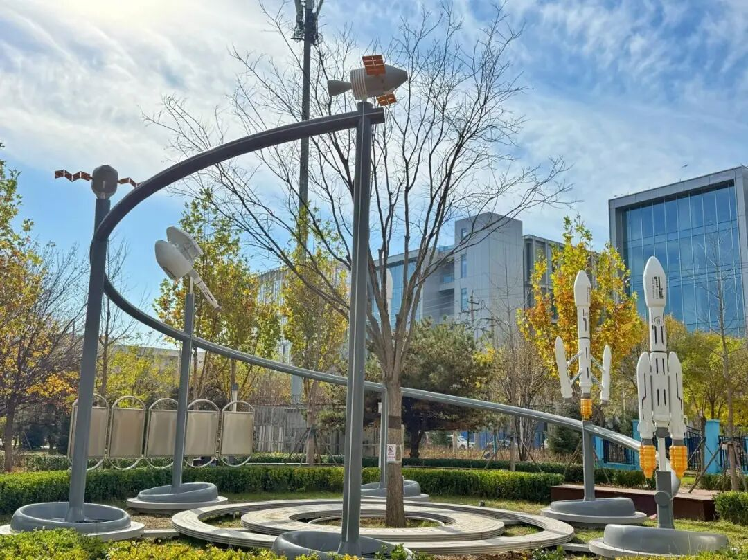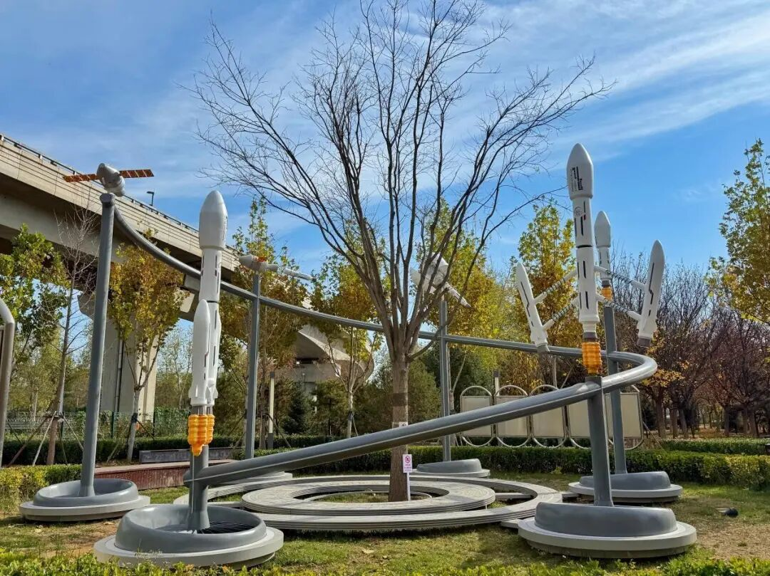 作为航天产业集聚的科创高地,全国有75%的商业火箭整箭研制企业都聚集在北京亦庄。兴海公园是亦庄新城空天街区的配套主题公园,位于大兴区瀛海镇,东邻京岚线,北接瀛昌街,西邻瀛福路。这里焕新升级后,不仅是一片公园的绿意,更是一本“行走的空天教科书”,一个孩子们梦想起航的太空基地,一处连接产业与生活的未来感空间。