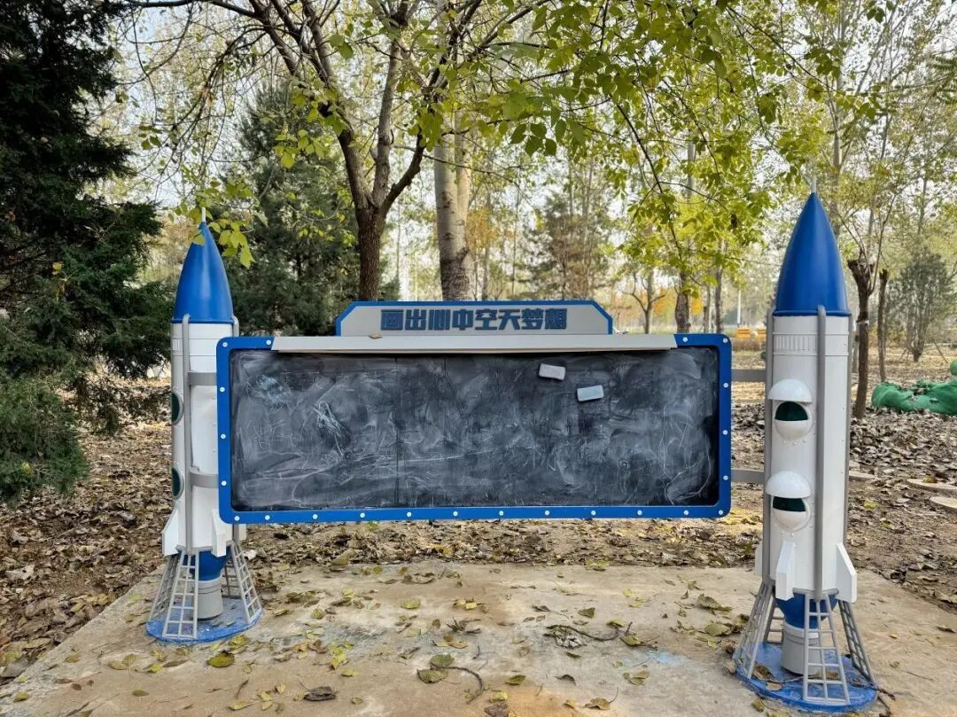 作为“太空梦孵化地”,公园设计了很多互动装置,孩子们在“寰宇之窗”广场上打卡拍照,在被火箭“守护”的儿童画板上画出空天梦想,每一天都有航天的种子在悄悄发芽。