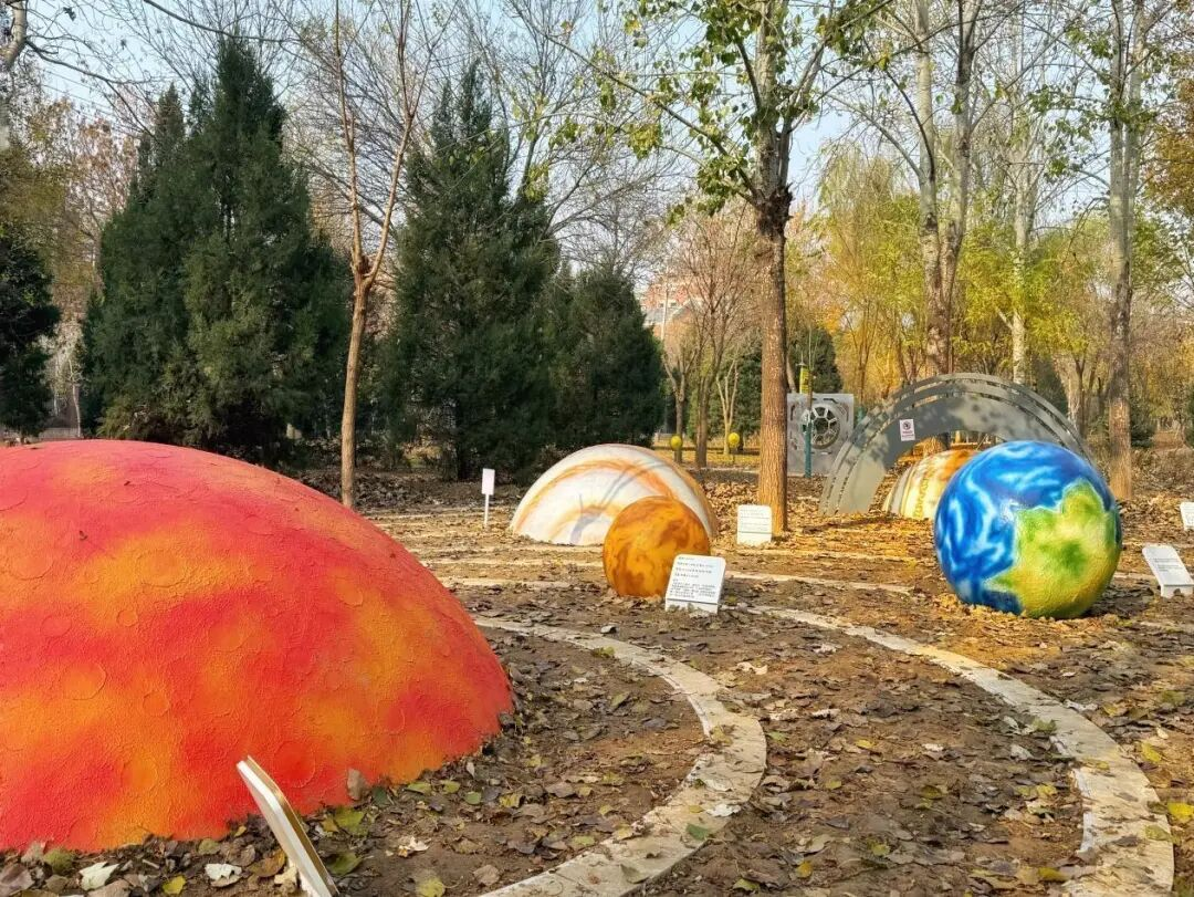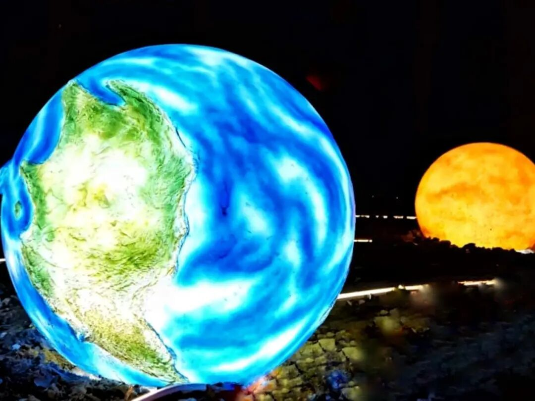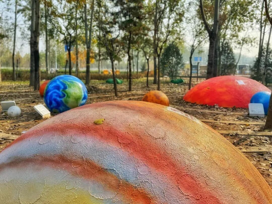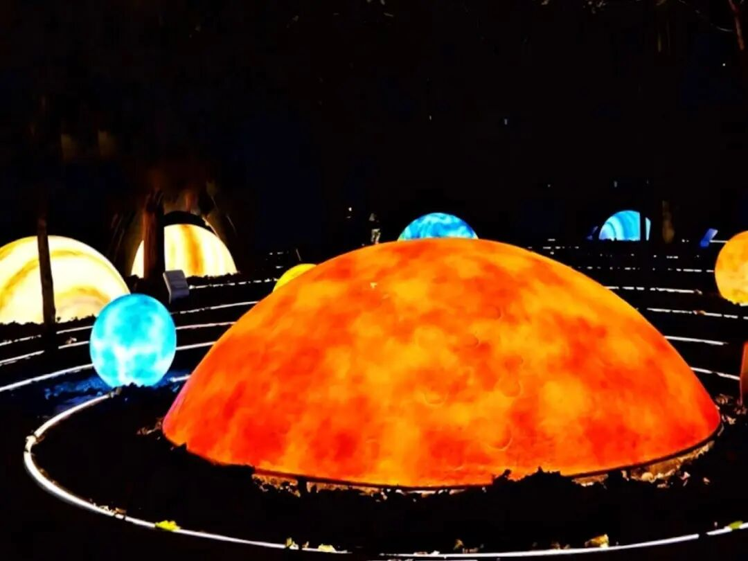 在“林中星系”,人们可以走进“银河”——水星、金星、火星、木星、地球、月球……十大天体景观一一出现在眼前。到了夜晚,“银河”和星球亮起,在这里仿佛置身浩瀚宇宙,体验“航天的浪漫”。