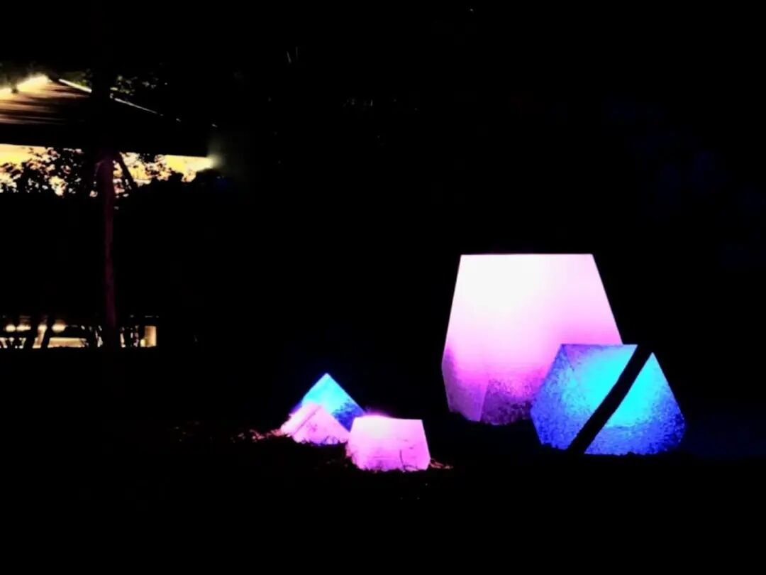 公园的另一头是梦幻的“林中星系”,通向这里的地面上嵌着很多彩色的立方体,到夜晚就变成了梦幻的“荧光石子”。