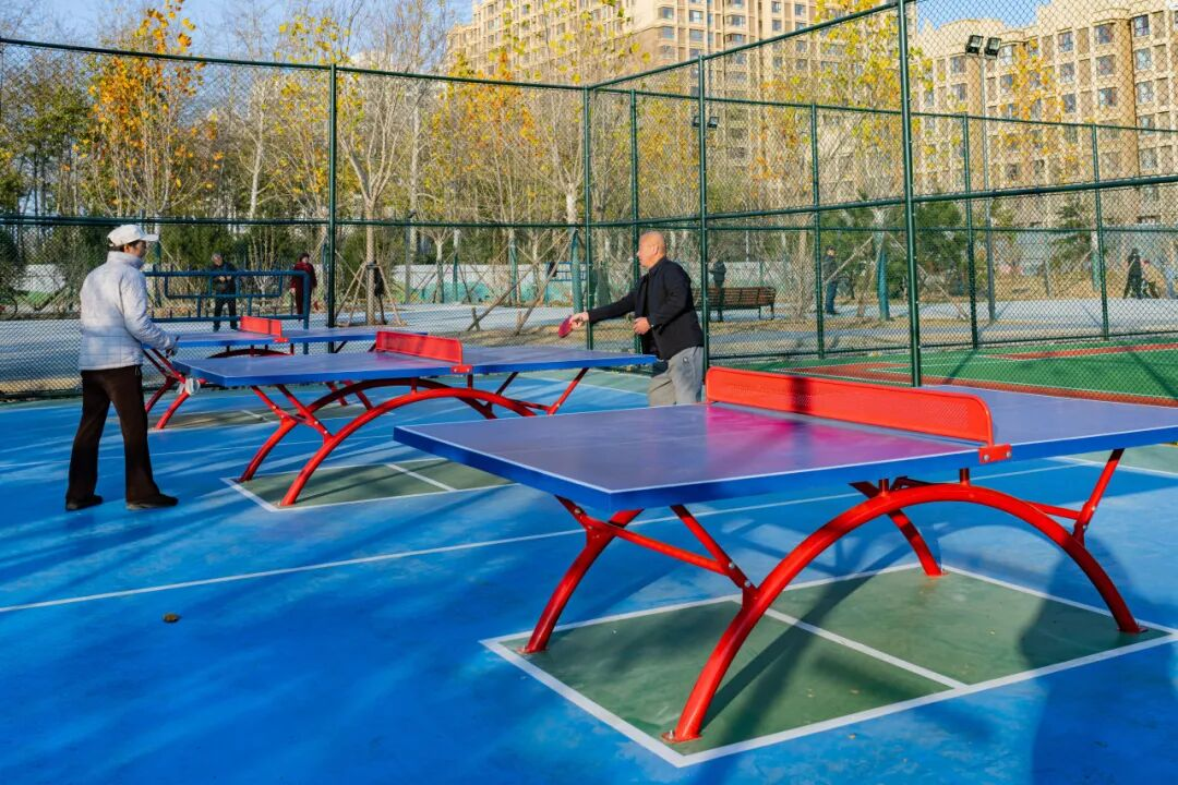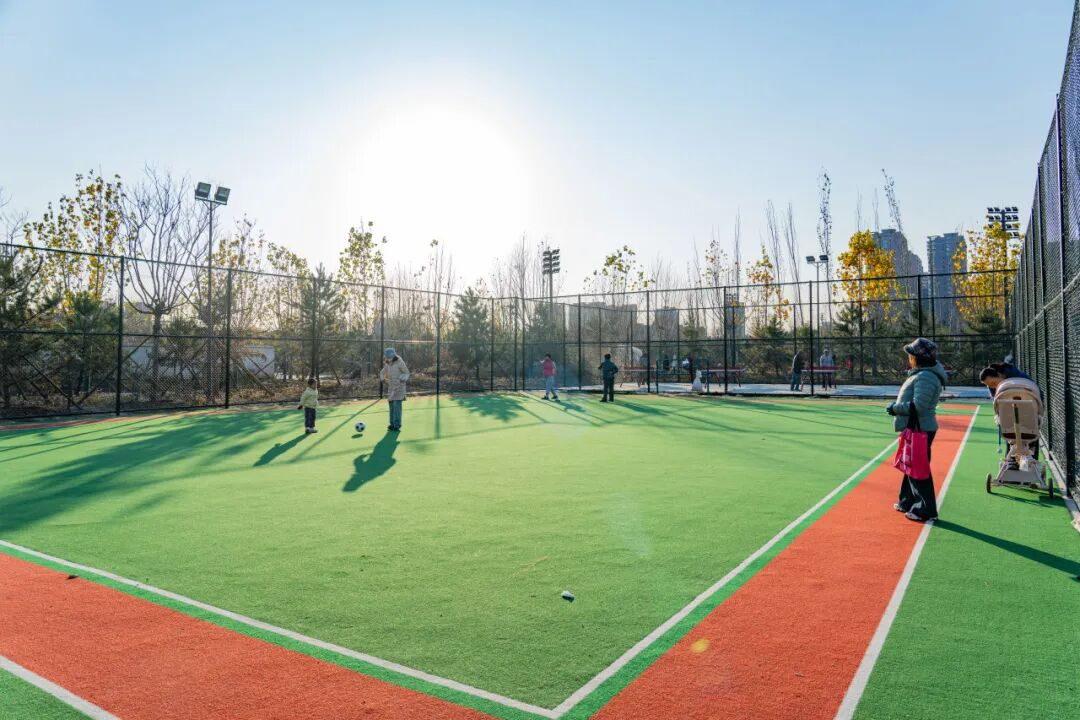 活力运动区中色彩鲜艳的运动空间为冬日下的公园注入了满满活力。健身器械、羽毛球场、乒乓球场、门球场等多种类型的运动场地,满足了不同人群的需求。