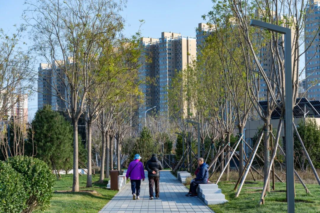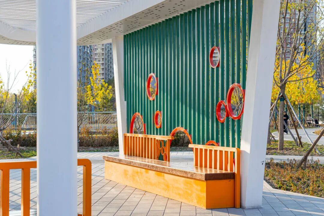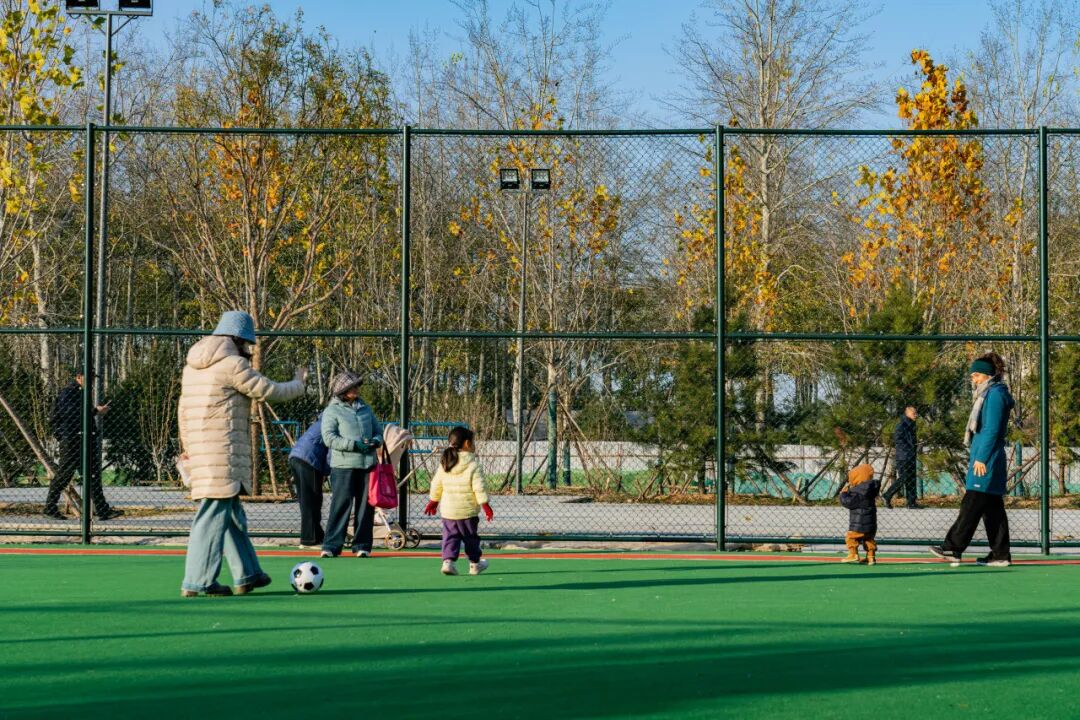 阳光休闲区有休息廊架、下沉庭院,冬日的午后,人们可以在树影摇曳间享受静谧的户外时光。阳光大草坪也很是吸睛,成为亲子撒欢的秘密基地。