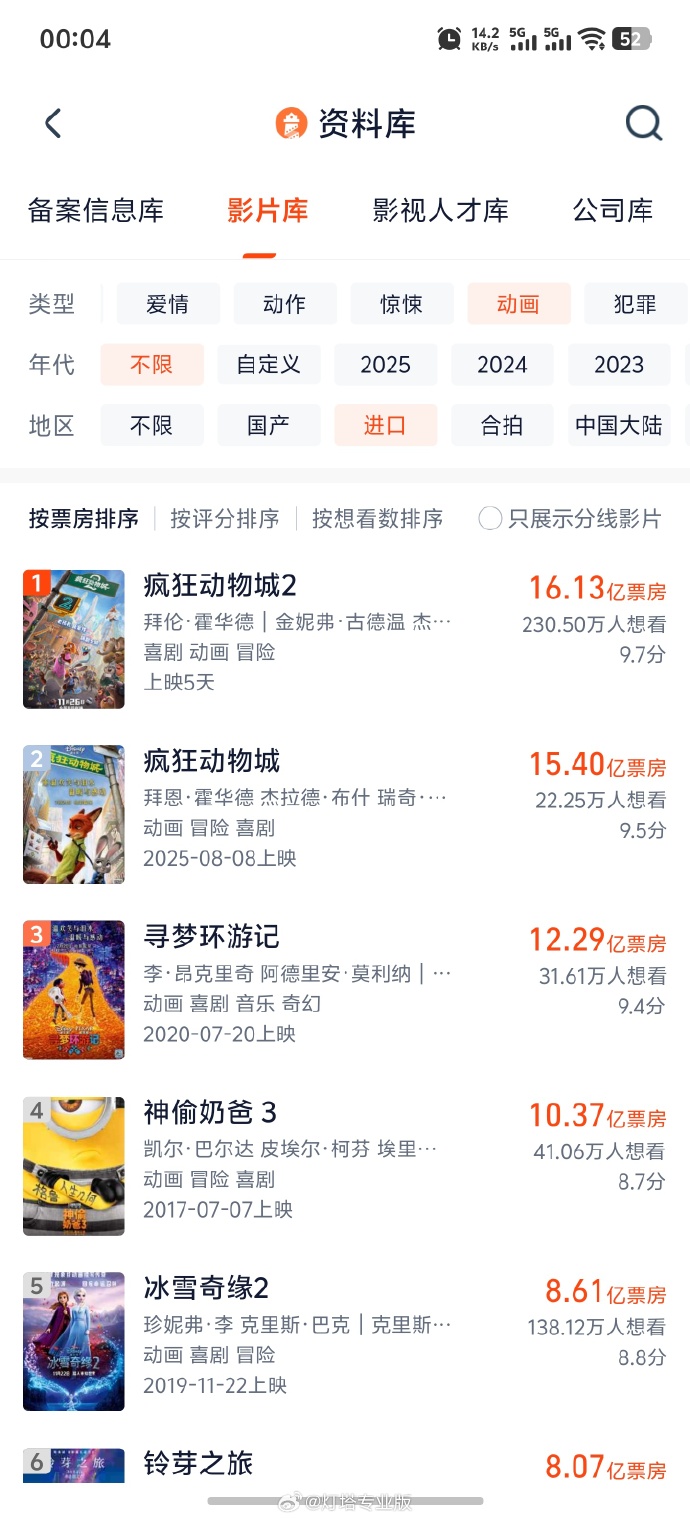 《疯狂动物城2》成为中国影史进口动画票房冠军!