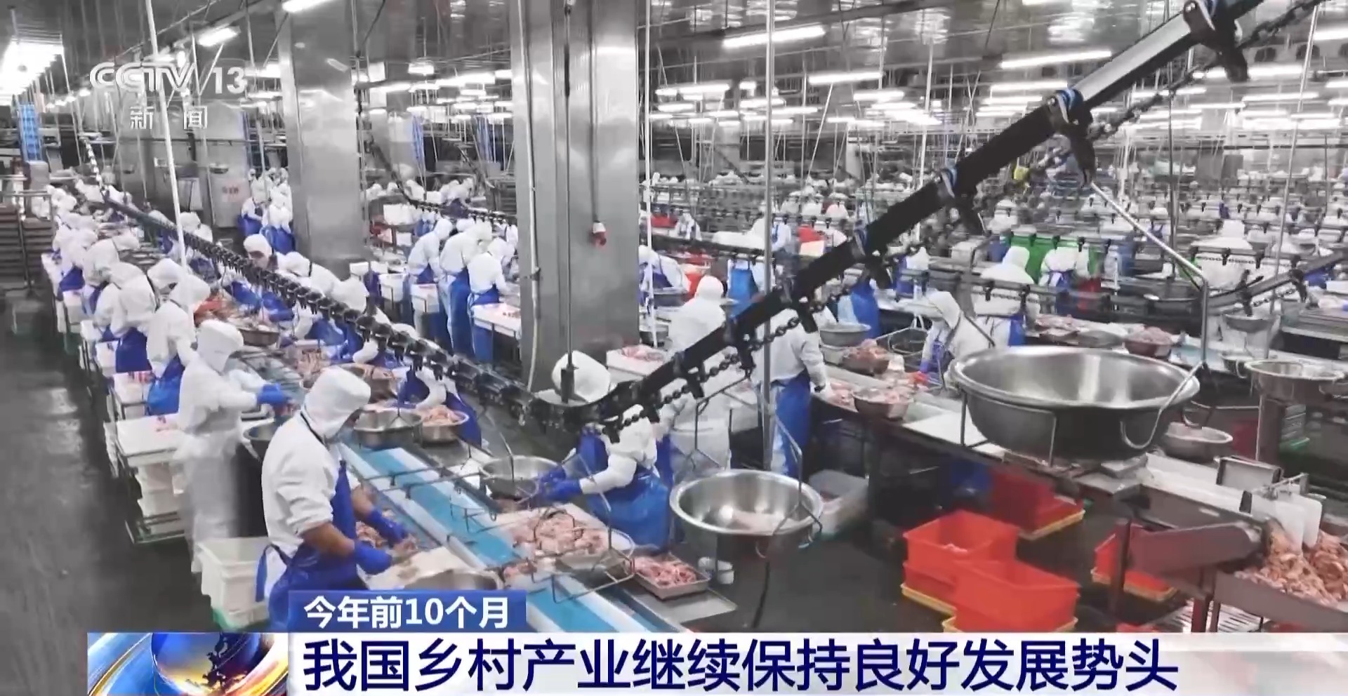 1-10月,我国农产品加工业稳中有进。规模以上农副食品加工业增加值同比增长6.3%。加工布局不断优化,产能持续向产地下沉、向主产区聚集。产业主体发展壮大,龙头企业整体运行良好,全国县级以上龙头企业超9.8万家,其中涉及农产品加工的企业占比超过八成,生产经营水平和带农能力稳步提高。