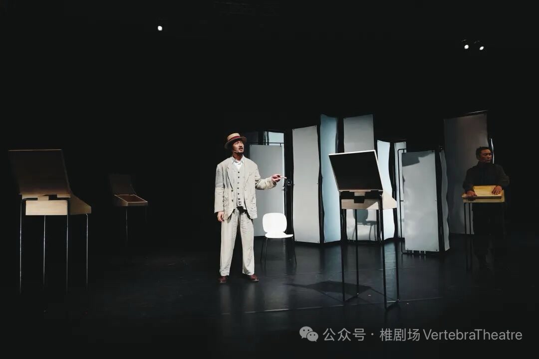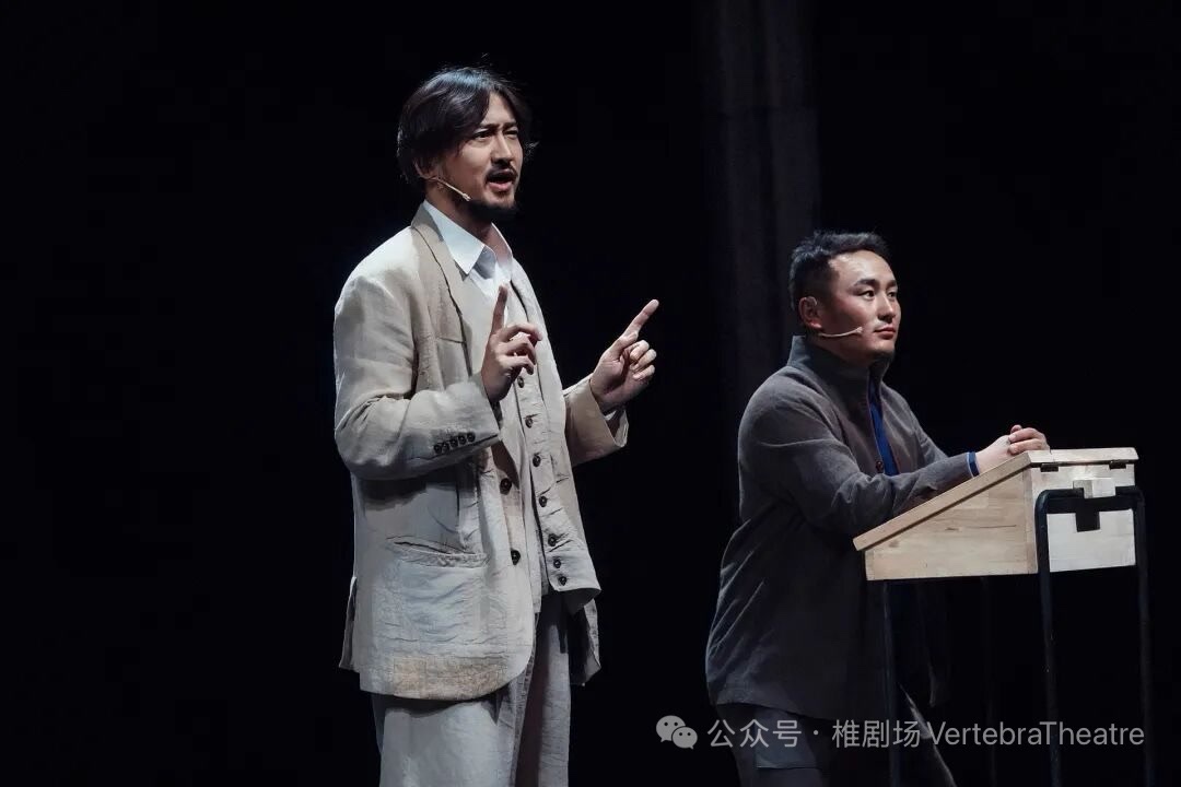 舞台上,王传君饰演的律师,在回忆与现实中穿梭;苏力德普日布则一人分饰多角,化身观察者、助手与哲学层面的超越性存在。两人的对手戏在简洁写意的舞美映衬下,叩问着人性孤独、沟通失效与个体对异化社会的被动抵抗等永恒命题,让百年前的小人物向既定秩序发起的温柔反抗,引发当代观众的共情。