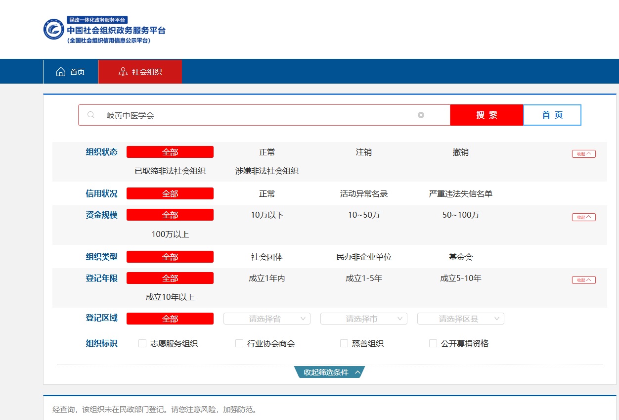 故事说起来煞有介事,但记者在搜索引擎上,完全查不到“岐黄中医学会”的任何信息,甚至在中国社会组织政务服务平台的社会组织查询系统中,也查不到这个组织。