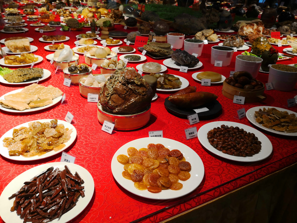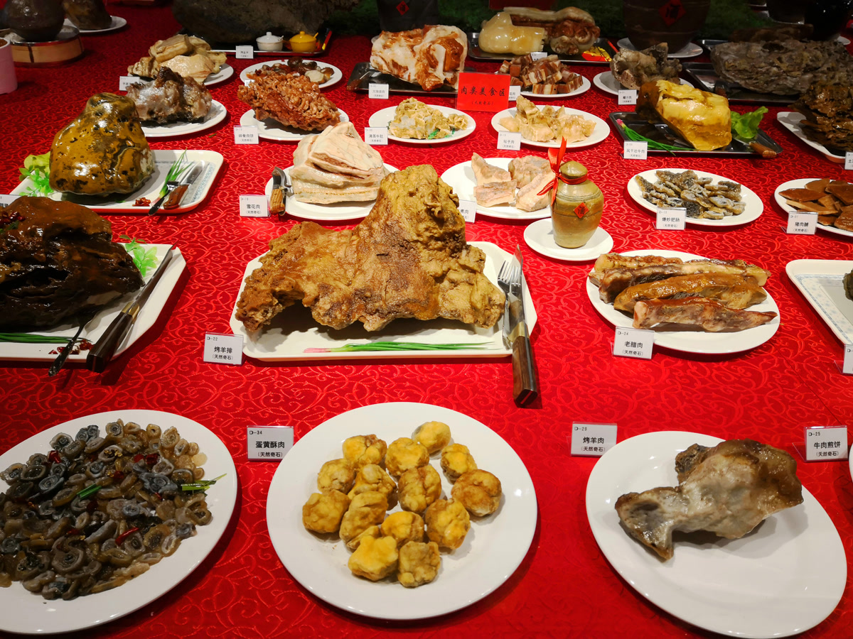 然而,这桌“硬菜”的真正魅力,并不仅在于形似,更在于它所承载的文化内涵。不仅展现了大自然的鬼斧神工,也体现了中华饮食文化的博大精深。这些石头“硬菜”不仅是艺术的结晶,更是珍贵的文化遗产,让观者在惊叹自然神奇的同时,也能感受到中国人对美食的热爱与传承。
