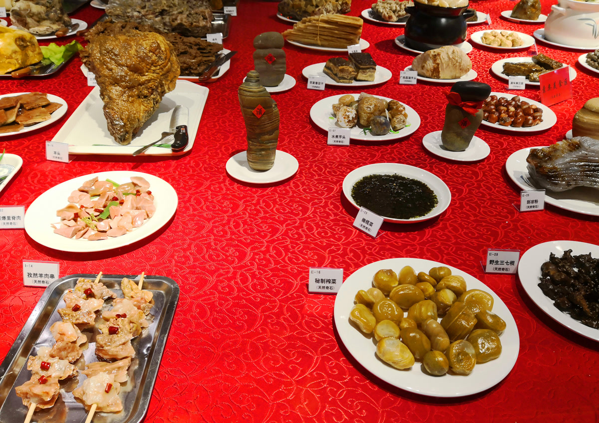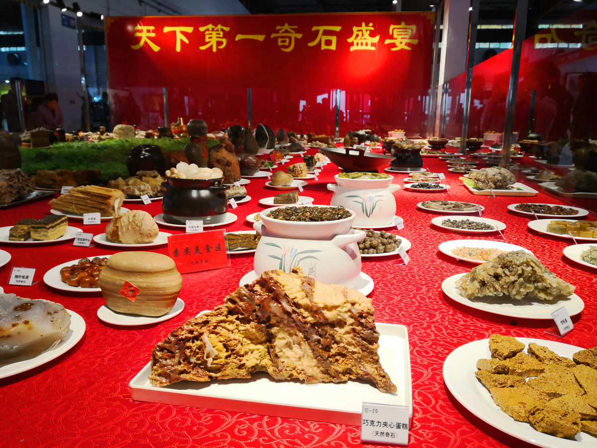 自古以来,中国人便信奉“民以食为天”,食物不仅是生活的必需,更是文化与情感的载体。而今天,一种别开生面的“盛宴”——堪称满汉全席的石头宴,将中华美食文化与奇石艺术完美融合,以石为“菜”,以意为“味”,打造出一桌令人叹为观止的视觉大餐!