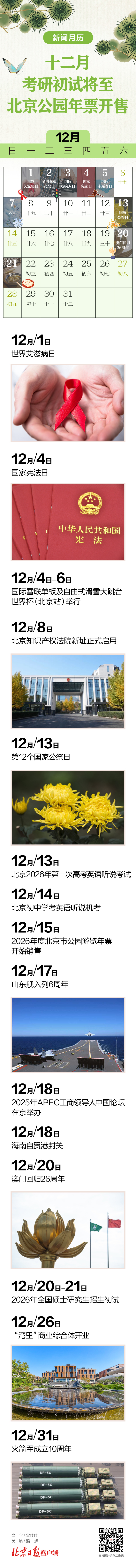 新闻月历|十二月,考研初试将至,北京公园年票开售