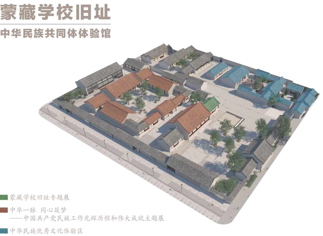 2023年3月28日,在中央和国家有关部门关心支持下,在北京市和国家民委共同推动下,蒙藏学校旧址正式对外开放。旧址西院设有“中华一脉 同心筑梦——中国共产党民族工作光辉历程和伟大成就主题展”和“蒙藏学校旧址专题展”;东院为中华优秀文化体验区,以季度为单位,已邀请天津、内蒙古、陕西等20余个省市轮流展示本省民族文化体验项目。