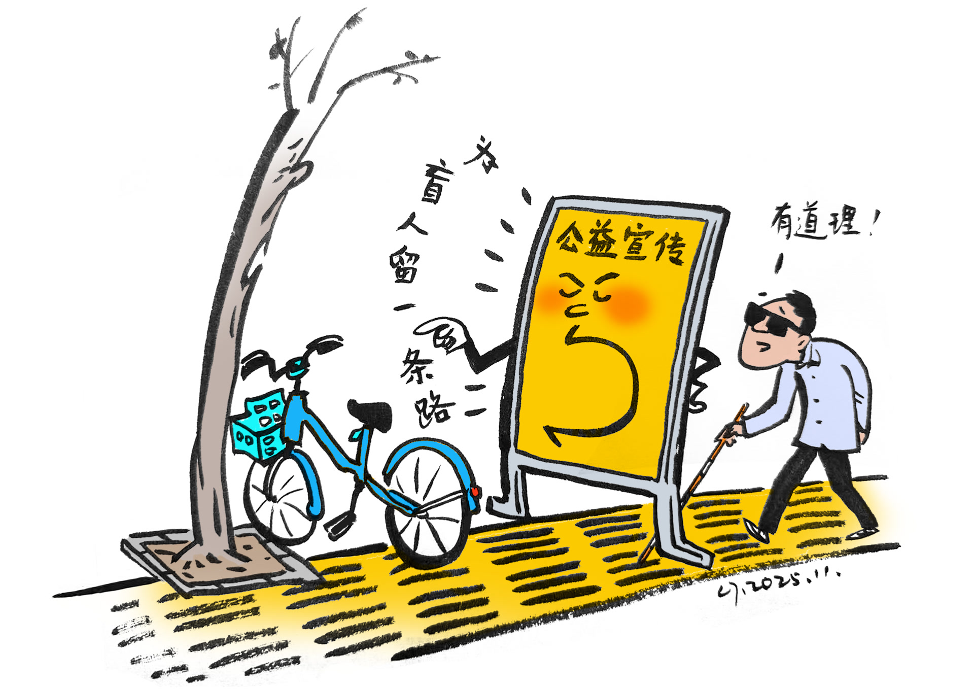 近日,有湖南邵阳市民在社交平台反映,当地一公交站牌的公益宣传栏设在盲道中央,而宣传栏上印的正是“为盲人留一条路”,真是讽刺。当地已整改完毕,可各地盲道被占的问题还有不少。盲道,怎么就这么“忙”?