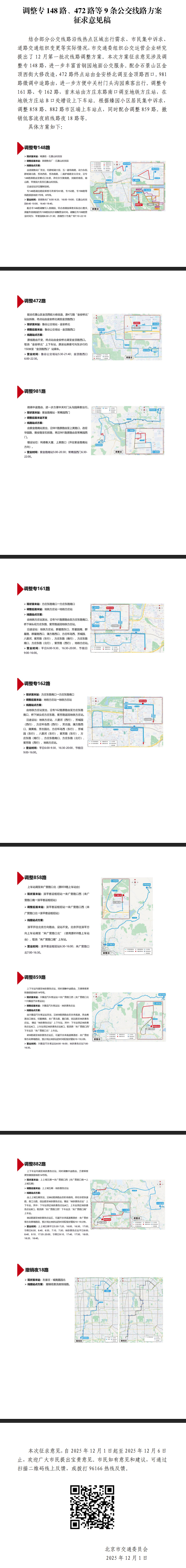 关于对调整专148路、472路等9条公交线路方案征求意见的公告